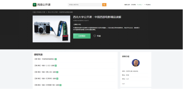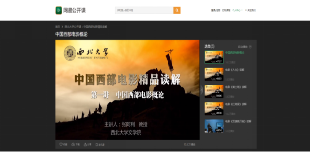 陕西省精品课程、陕西省精品资源共享课程、陕西省精品在线开放课程《电影作品读解》