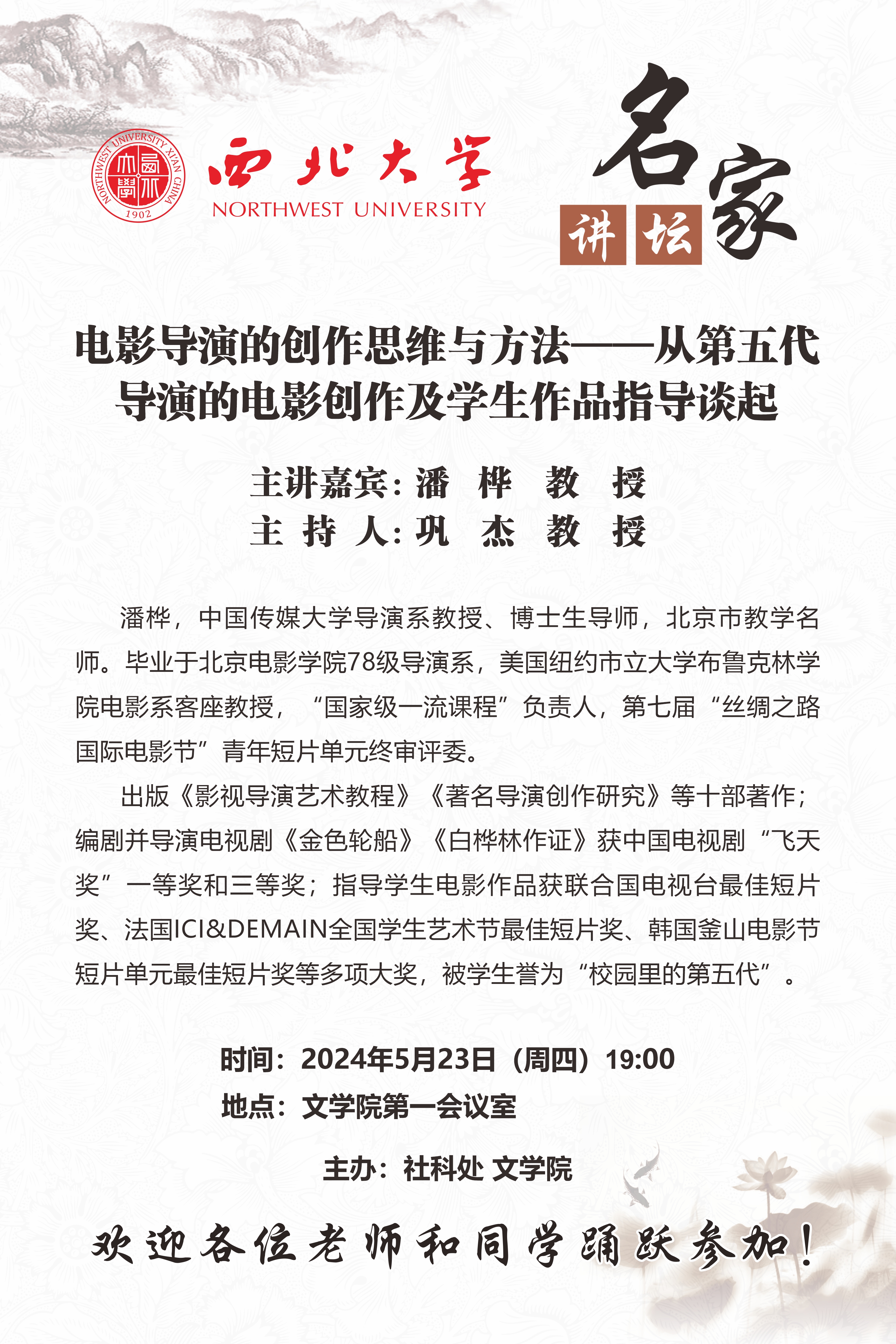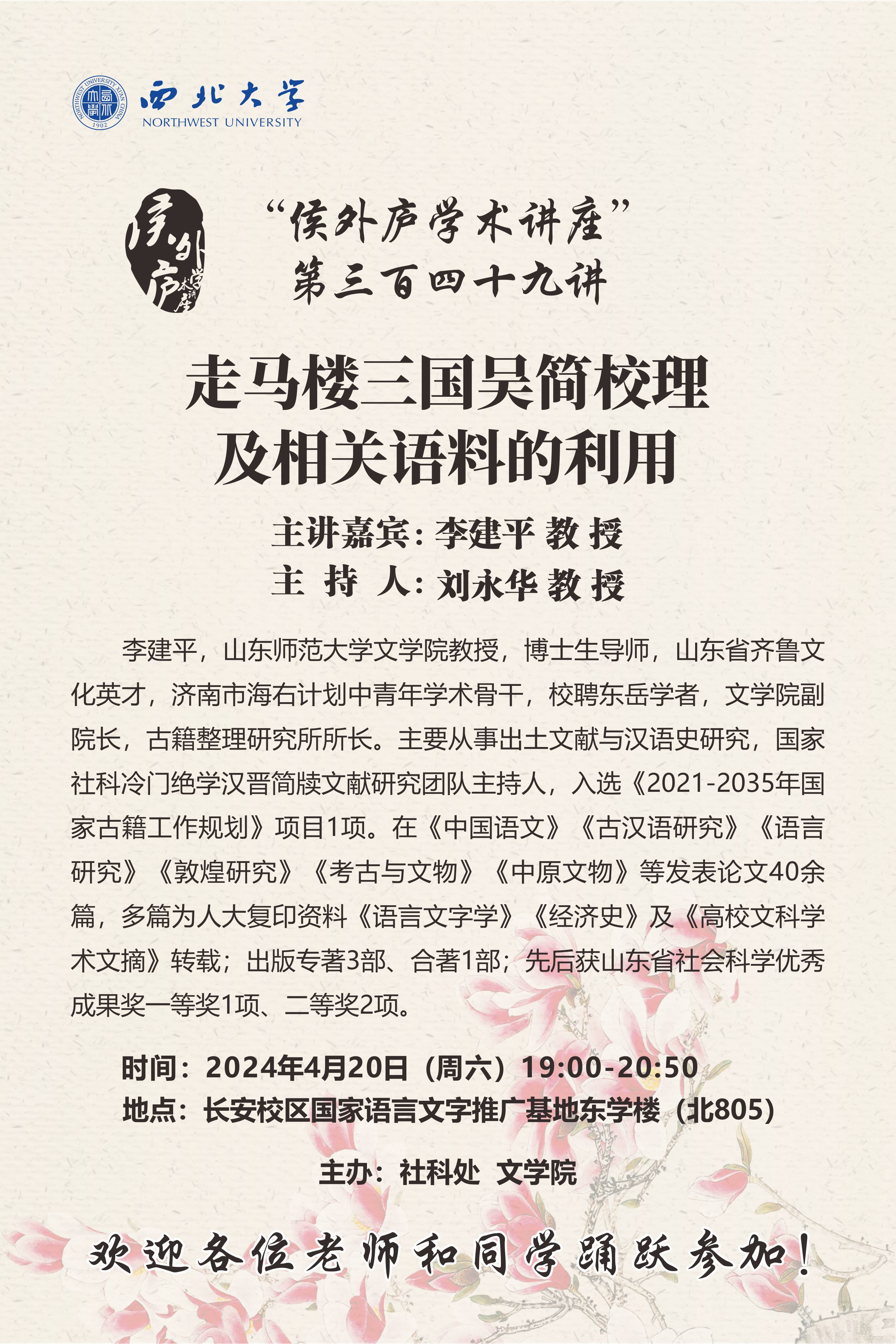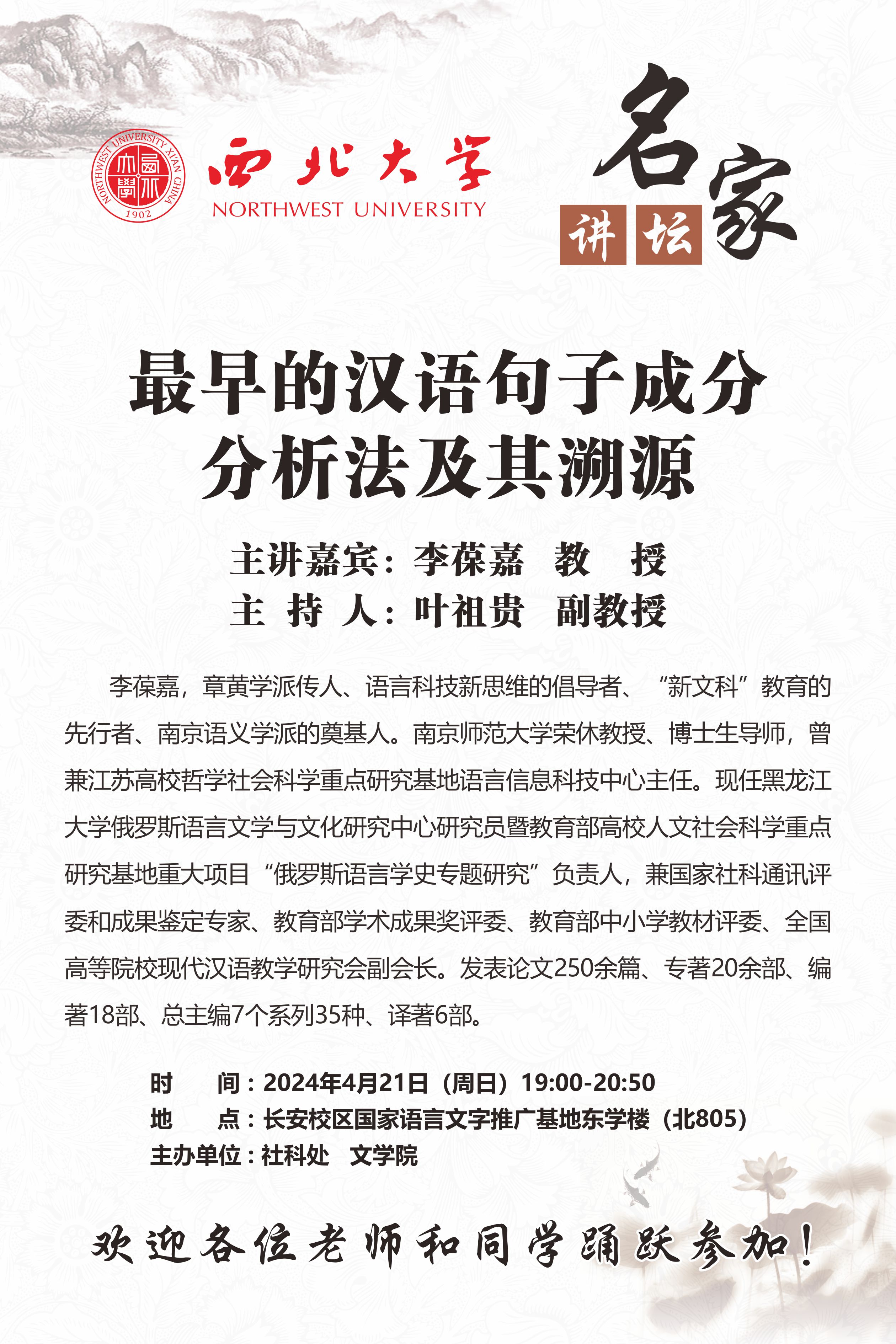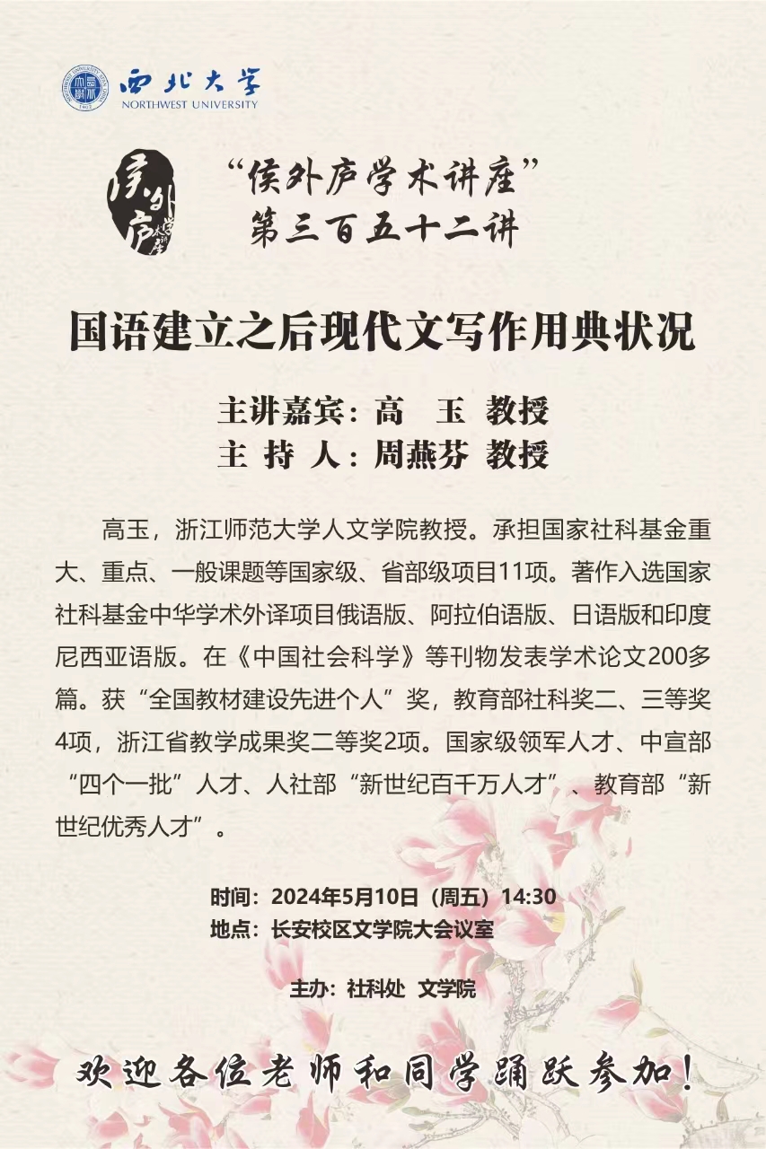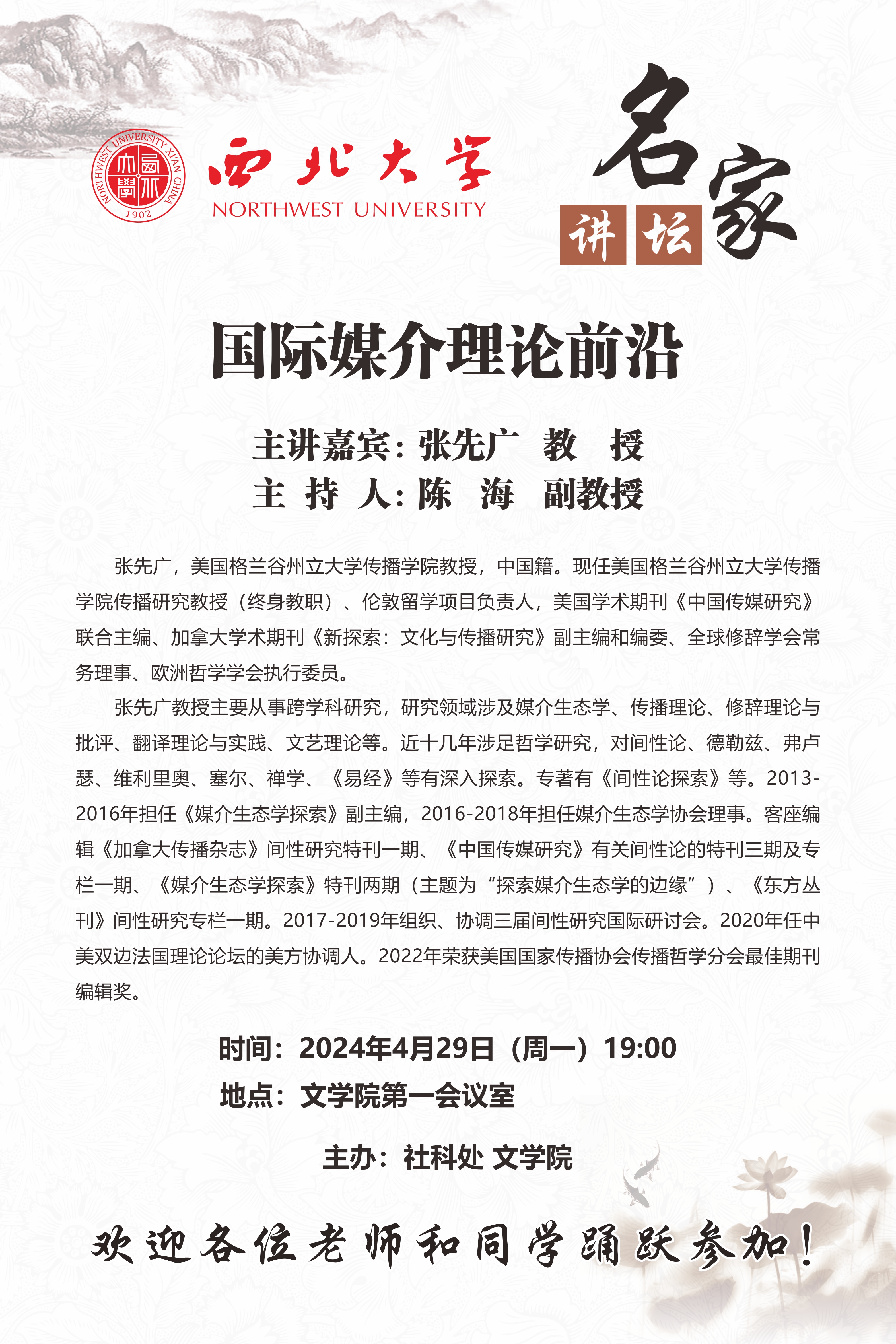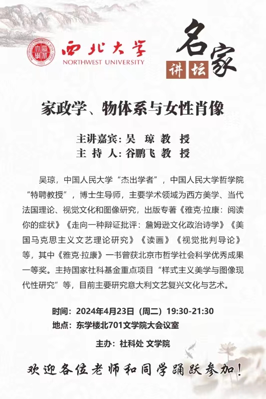 举办学术活动33次。主办“中国鲁迅研究会2024年年会暨纪念鲁迅西安讲学100周年国际学术研讨会”“历史图景·西部空间·民族影像:中国西部电影理论诞生40周年学术研讨会”“第二十届全国近代汉语学术研讨会”“贾平凹《河山传》学术研讨会”“76net必赢官网第三届古代文学、文献与文论工作坊”等学术会议5次;承办“侯外庐讲座”17次、“名家讲坛”8次,举办“锦熙讲座”暨“南山讲坛”3次。