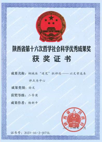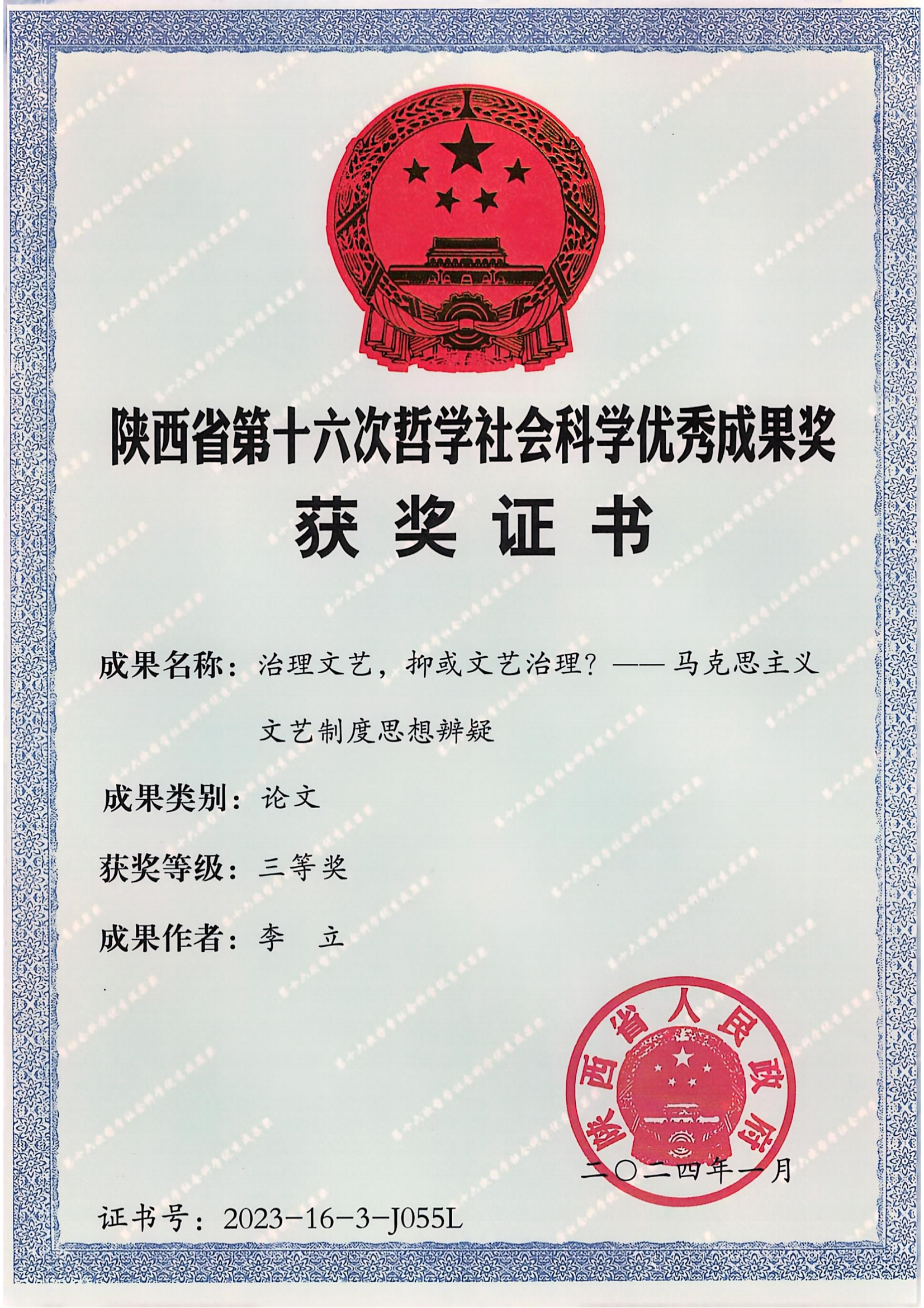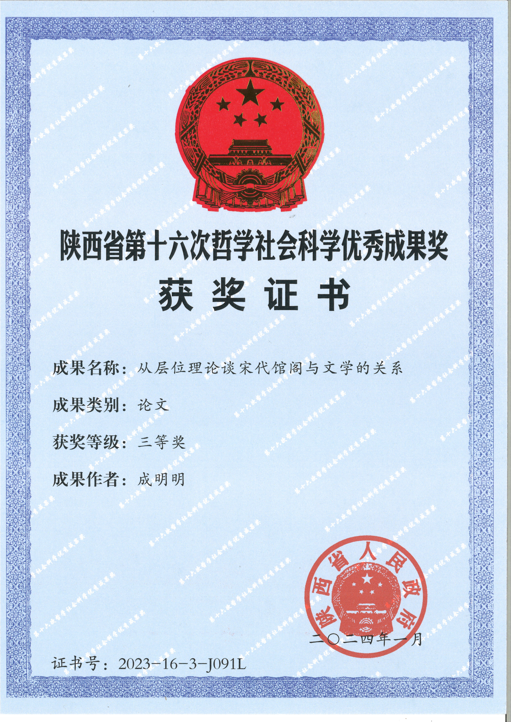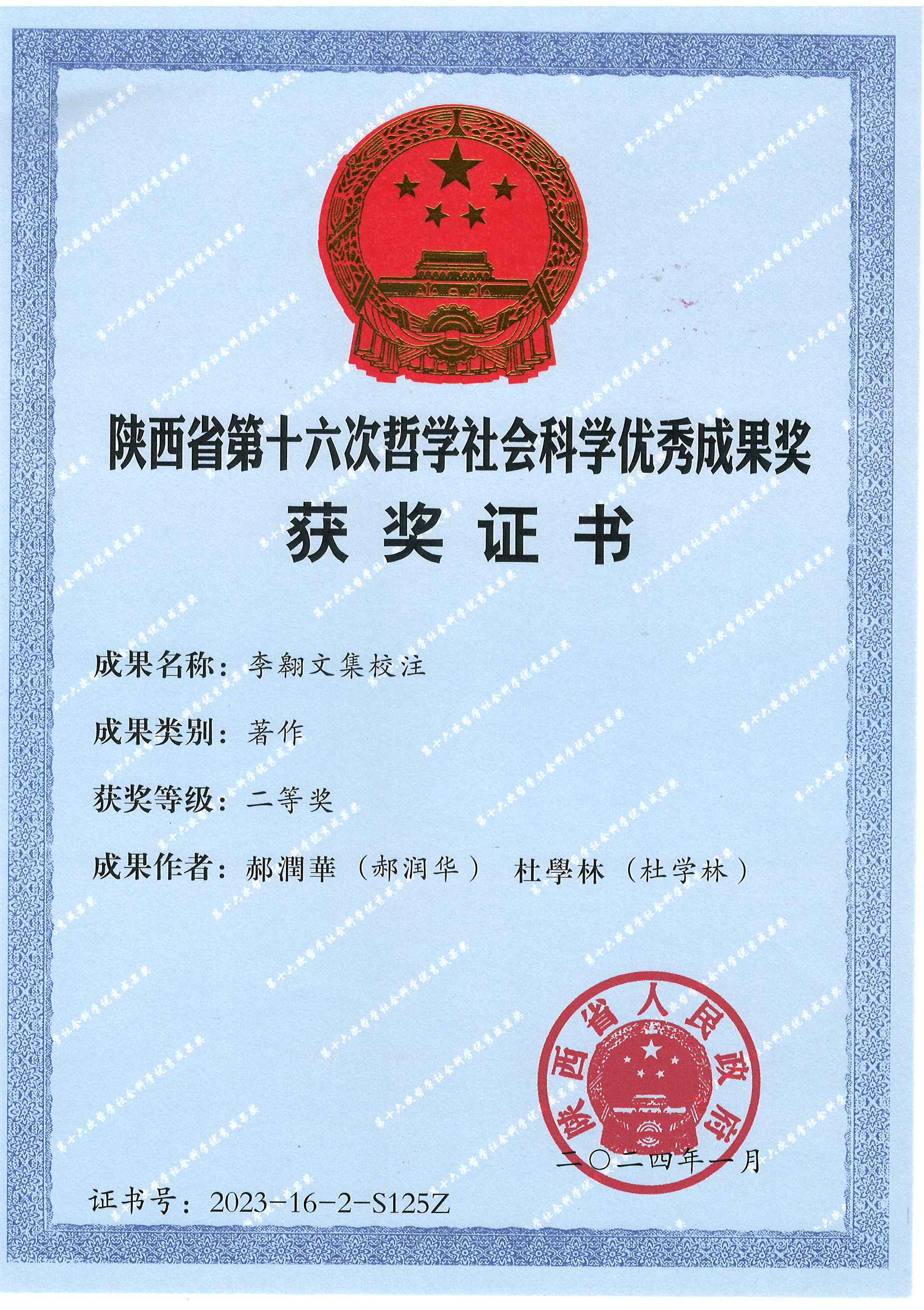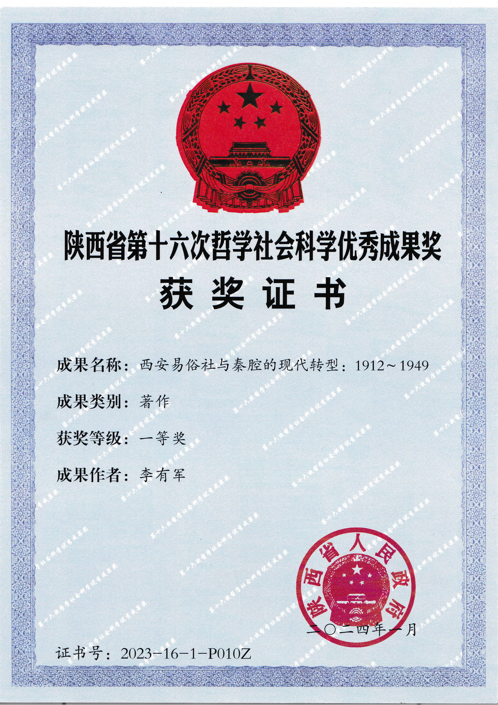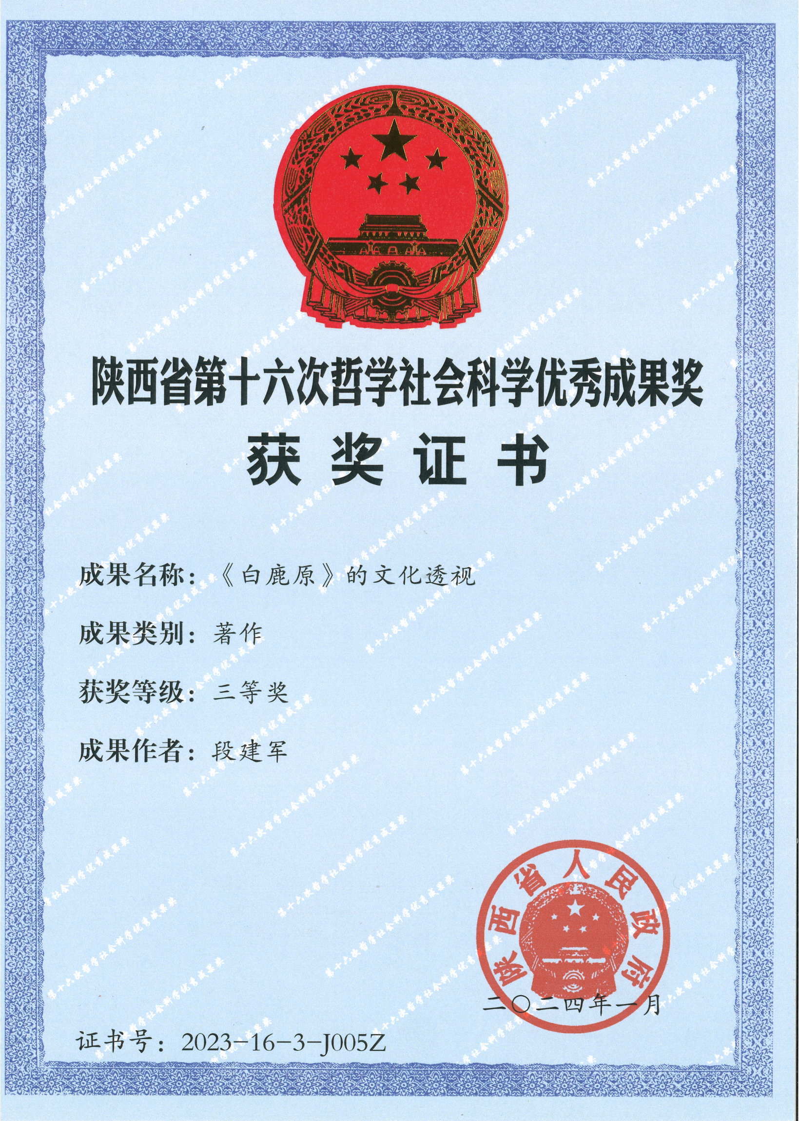 3、荣获陕西省第十六次哲学社会科学成果奖多项