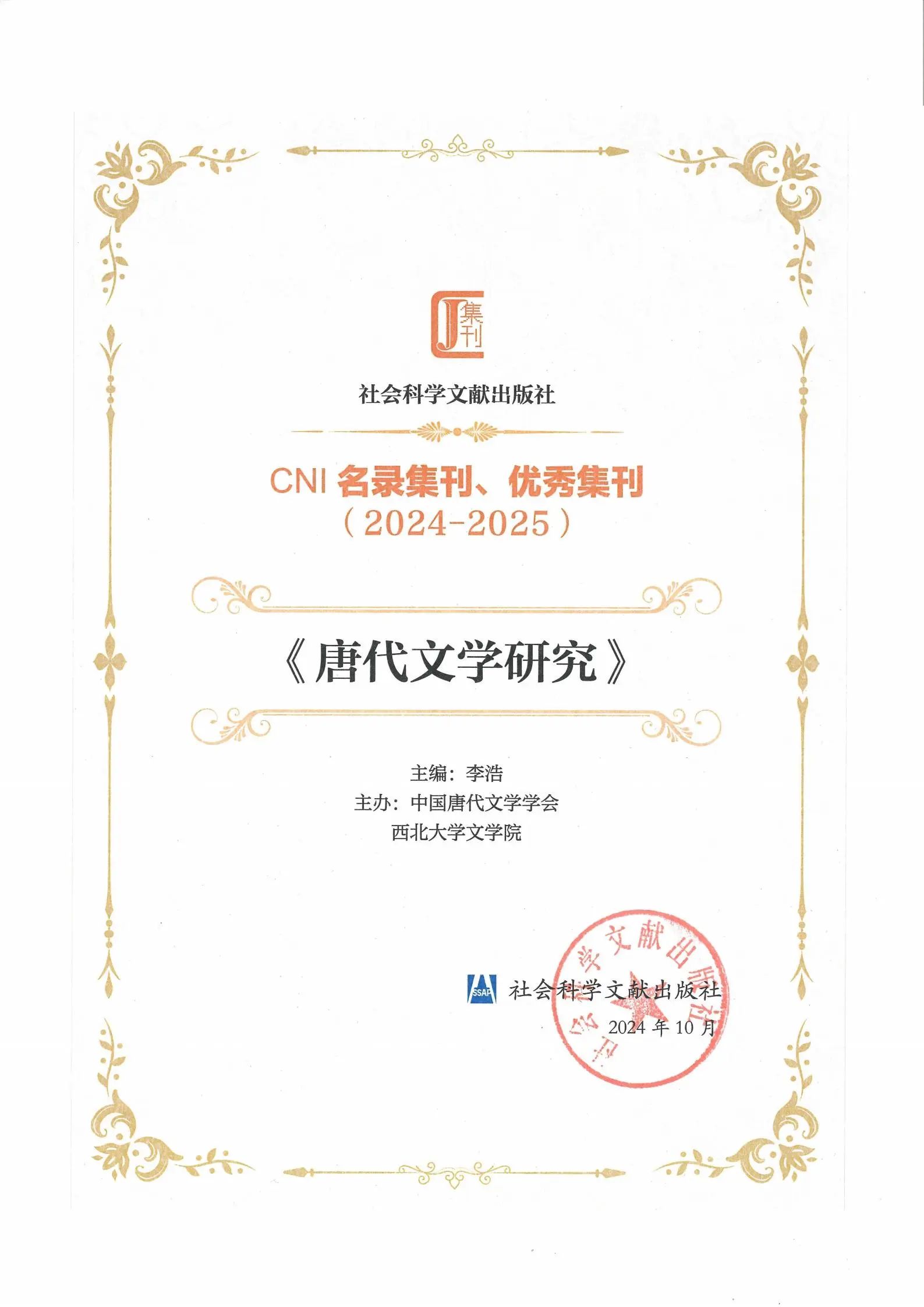主编并出版《唐代文学研究》第24、25辑、《中国文学研究文摘》第3辑。《唐代文学研究》获评为社会科学文献出版社CNI名录集刊(2024-2025)和2024年度优秀集刊。