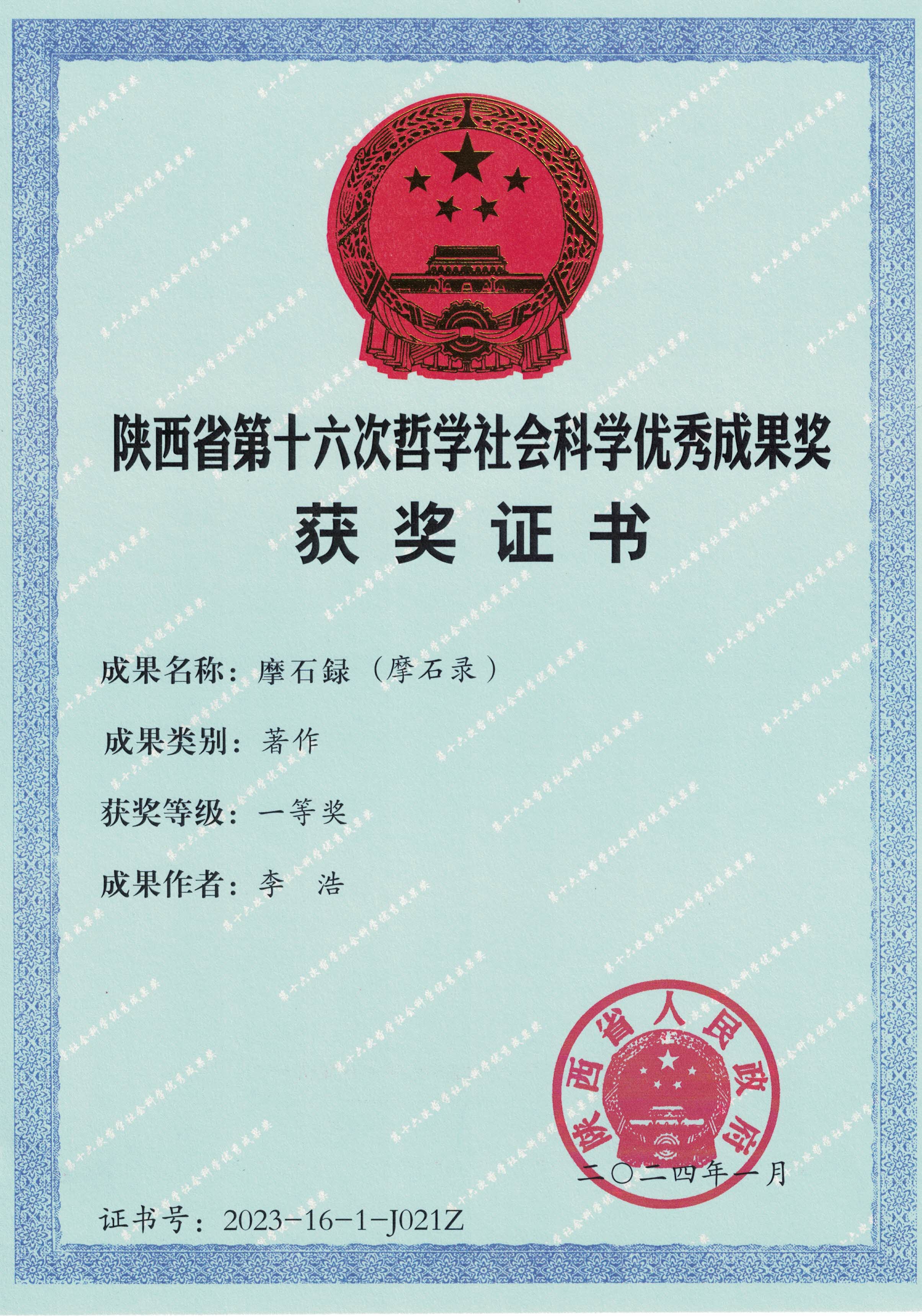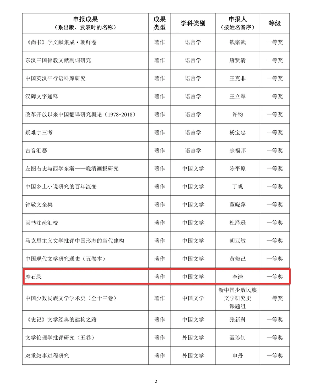 李浩教授的《摩石录》荣获教育部第九届高等学校科学研究优秀成果奖著作论文类一等奖。