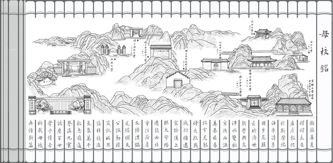 作为伴随着改革开放的时代大潮而进入西北大学学习,后又成为西北大学各项事业建设者的我们这一代,不但从《母校铭》中领略到了“百廿西大源远流长,织锦传薪山高水长”的历史画卷。更是亲眼见证和经历了新时期以来学校的跨越式发展大踏步前进。80年代联合办学给学校带来了勃勃生机,90年代“211工程”建设使学校跨入了发展的快车道,新时代“双一流”建设促进了学科专业水平持续提升。一座座教学科研大楼拔地而起,一个个成果在教学科研实践中高效产出,一张张获奖证书承载着社会的赞誉和国家的肯定,亦昭示着西北大学将会有更加光辉灿烂的未来。这些奋斗、成就和喜悦,就是一万两千字甚至一百二十万字也难以尽述。从这个意义上说,120字的《母校铭》,可谓字字以一当万,句句重过千钧。