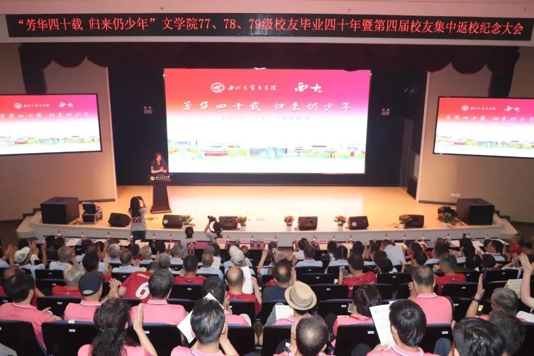 今天是我们毕业四十年重返母校的日子。每个班需要一位同学代表发言。我深知自己不够格。我们七七级实际是一个时代的代名词,而西北大学中文系七七级曾经在那个时代独领风骚,办《希望》杂志,演《于无声处》话剧,在西安,乃至在全国高校,都曾经产生过较大的社会影响。更何况我们班还出现了众多人物,作家、诗人、评论家、记者、编辑、导演、教授、博导,还有官员和企业家,都是各行各业、各个领域的风云人物,至今影响不减。我怎么能代表得了大家?