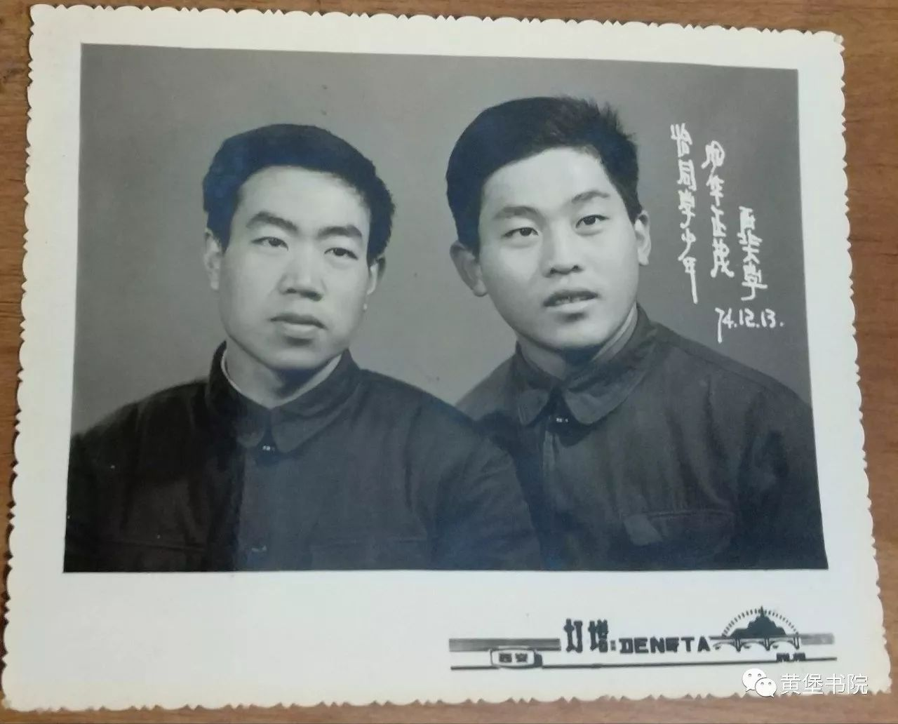 当时有一首出自北京大学的《理想之歌》,流传一时。马雅可夫斯基的阶梯诗,贺敬之、艾青、郭小川的诗,我们已经很熟悉。贾同学在等着坐亲戚的卡车回家,二人便约定一起写一首《工农兵学员之歌》。天气闷热,我们在宿舍里仅穿一条裤头,诗兴大发,从长江黄河写起,到工农兵学员的历史使命,洋洋洒洒写了几百行。投寄出版社后,抗美援朝诗人文大家先生约见了我们,他已经用小楷毛笔圈圈点点,从头到尾修改编辑了一遍,准备出版。之后我们拿到了新书《放歌天安门》,我们的诗作是几首抒情长诗之一。为纪念这一事件,我和贾同学专门到西大街灯塔照相馆合影,写上恰同学少年风华正茂的字样。这张照片,便成了多年之后追忆大学时代情谊的凭证。