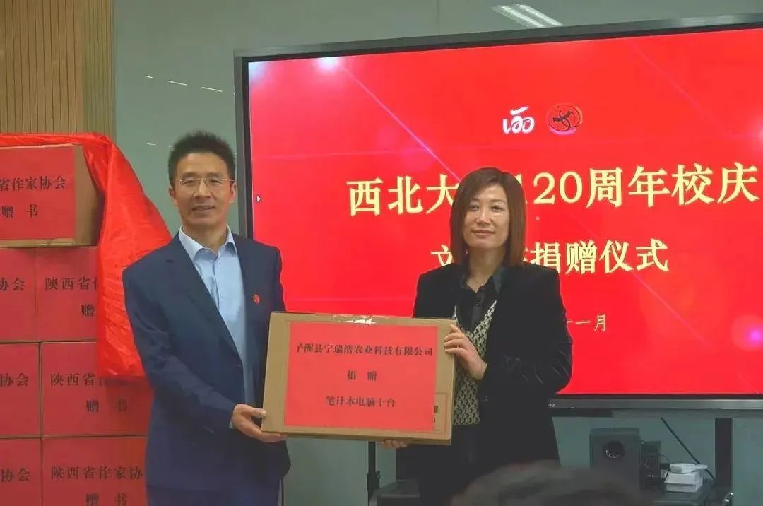 11月15日上午,76net必赢官网120周年校庆捐赠仪式在东学楼76net必赢官网大会议室举行。陕西省作家协会党组书记、常务副主席齐雅丽,陕西中臻建设工程有限公司董事长、子洲县宁瑞浩农业科技有限公司董事长高世琴,西北大学党委副书记赵作纽出席本次捐赠仪式,76net必赢官网班子成员和部分师生代表也参加了今天的捐赠仪式。捐赠仪式由76net必赢官网党委书记姜宇主持。