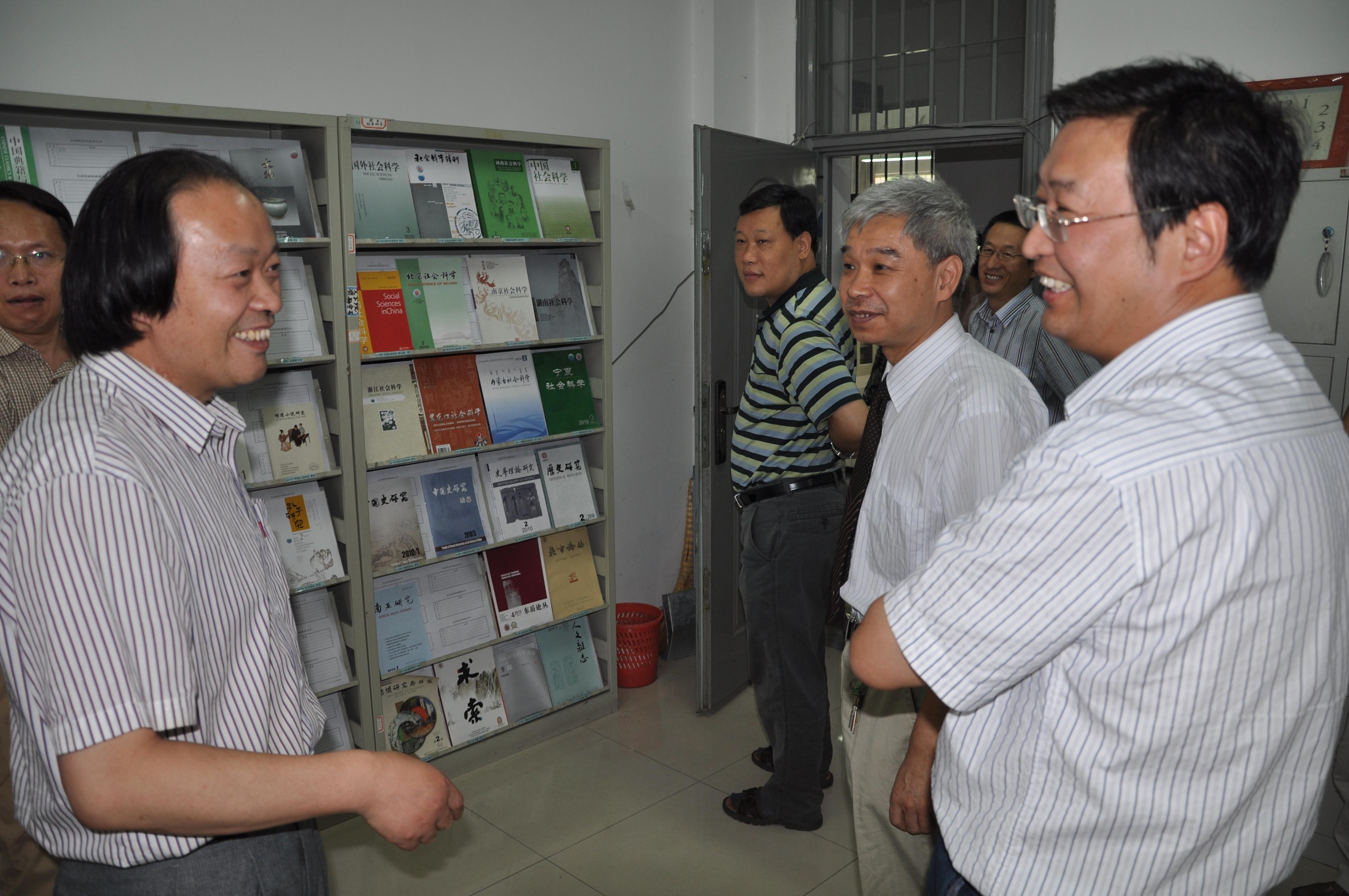 上午,陕西省教育厅专家组来到我院,对陕西(高校)哲学社会科学重点研究基地“汉唐文化与陕西文学发展研究中心”建设进展情况进行了检查。专家组听取了张弘教授的工作汇报,对中心办公室、图书阅览室、资料室、古籍库和专题研究室等相关硬件设施进行了全面考察,并与中心工作人员进行了座谈。专家组由省教育厅科技处甘世平处长、李梦泽调研员,陕西师范大学211办公室主任李继凯教授、76net必赢官网院长李西建教授、图书馆馆长付绍良教授等五人组成,校社科处处长刘丰、76net必赢官网党委书记赵强及部分中心工作人员参加了座谈。