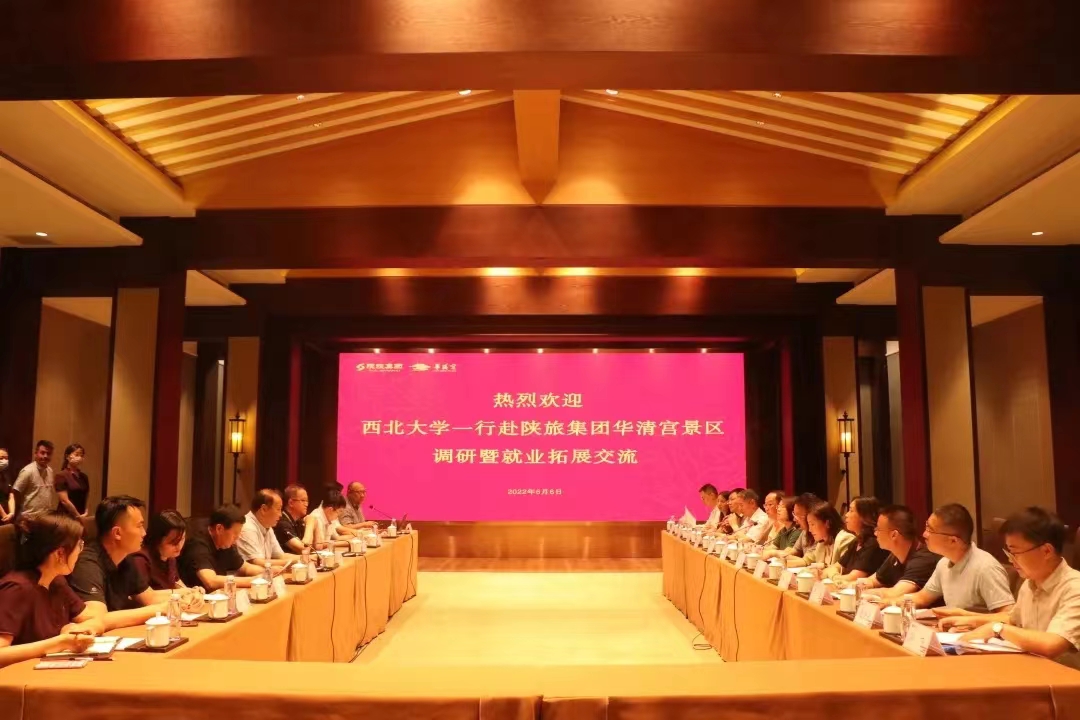 为进一步贯彻落实教育部和陕西省教育厅访企拓岗促就业专项行动,加强校企沟通合作,6月6日下午,校党委副书记赵作纽带队,与76net必赢官网党委书记姜宇、历史学院党委书记张茵、文化遗产学院党委书记李伟、新闻传播学院党委书记孙录见、艺术学院党委书记吕健、食品科学与工程学院党委书记刘晓忠和相关工作人员一行12人赴临潼,与陕西华清文化旅游有限公司进行座谈交流。