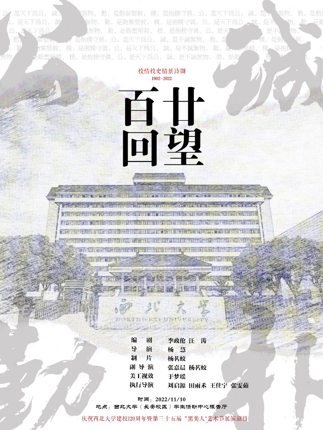 校情校史情景诗剧《百廿回望》献礼西北大学百廿华诞,通过多个具有代表性的人物和故事,生动再现了清末民族危亡、建国初意志觉醒、改革开放奋发前进、新时代民族复兴等不同时期,西北大学与国家民族荣辱与共、戮力同心的时代记忆,展现出西大师生不忘初心、踔厉奋发的精神风貌,诠释了“公诚勤朴”的校训和“艰苦创业 自强不息”的西大精神,进一步勉励新时代西大人接续奋斗,再创辉煌!