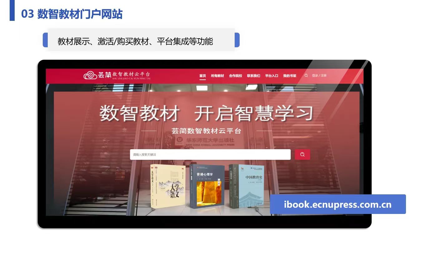 会议最后一部分内容,是华东师范大学出版社芸简数智教材云平台介绍。当前,在国家战略、教育数字化转型和新技术赋能的推动下,数字化转型已经是教材发展的必由之路。芸简数智教材云平台采用1个门户网站+3个平台的模式(学习平台、教学平台、编辑平台),具有全景内容呈现、智能交互学习、多维学习场景、学情数据反哺等功能,拥有同纸质图书同样的正规出版流程,具备对内容的政治性、科学性等方面的保障,有正式出版物号,可申报各类规划教材、教材奖。同时,出版社的数智教材启航计划,将和各院校、研究机构、合作单位一起,立项一批课题,开发一批实验性、示范性数智教材,遴选一批数智教材研究和实践基地,以期推动数智教材的基础研究、开发研究和应用研究,希望能和各院校师生一起,见证、参与数智教材建设新征程的启航!