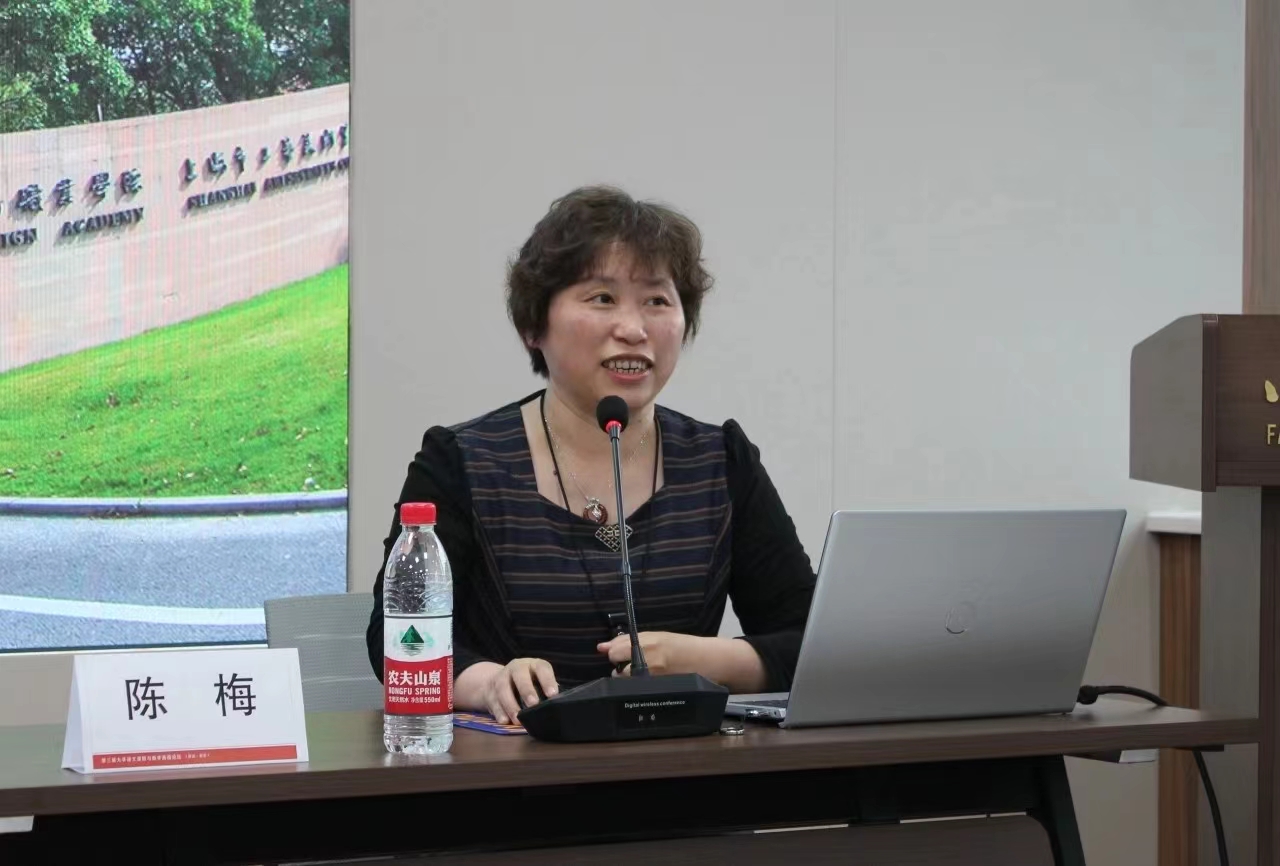 下午的第二部分会议研讨,第一场研讨由上海工艺美术职业学院基础部副主任,校语委副主任陈梅副教授,作了题为《新质教学力视角下大学语文的课程生态与发展趋势》的报告。面对当前大学语文课程设置边缘化、没有统一的课标等种种困境,陈老师提出了“新质教学力”的应对方式。与传统教学力相比,新质教学力更注重学生的全面发展,强调学生的主体地位和能动性,在教学中更多地关注学生的参与和发展。上海工艺美术职业学院采用“人文讲堂 + 实训探究”双主体的教学模式,紧扣艺术设计类高职学生的需求设计教学模块,采取任务驱动的教学组织形式,根据需求设计了中华诵、成人礼、诗词汇等项目模块,指导学生学以致用,给学生充分展示的舞台。在教学手段上采用实训用学、云端导学、课堂教学相结合的立体教学模式,教师指导学生使用智能技术的手段,可以有效帮助其自主学习,达到事半功倍的效果。陈老师团队在人文语文课上的创新,激发出学生的无限创意,使大学语文课程焕发出新的魅力。