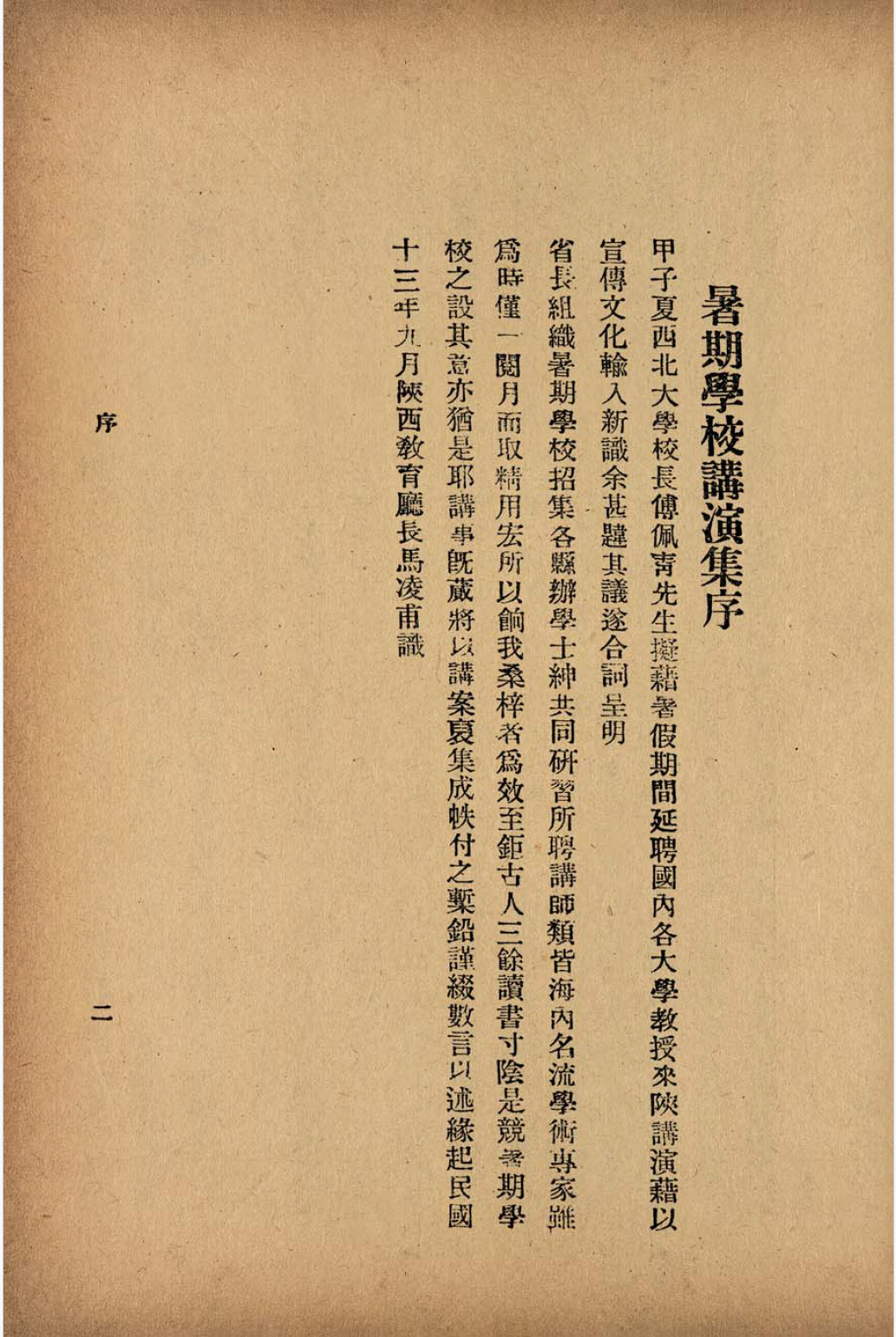 《国立西北大学、陕西教育厅合办暑期学校讲演集(二)》总目录