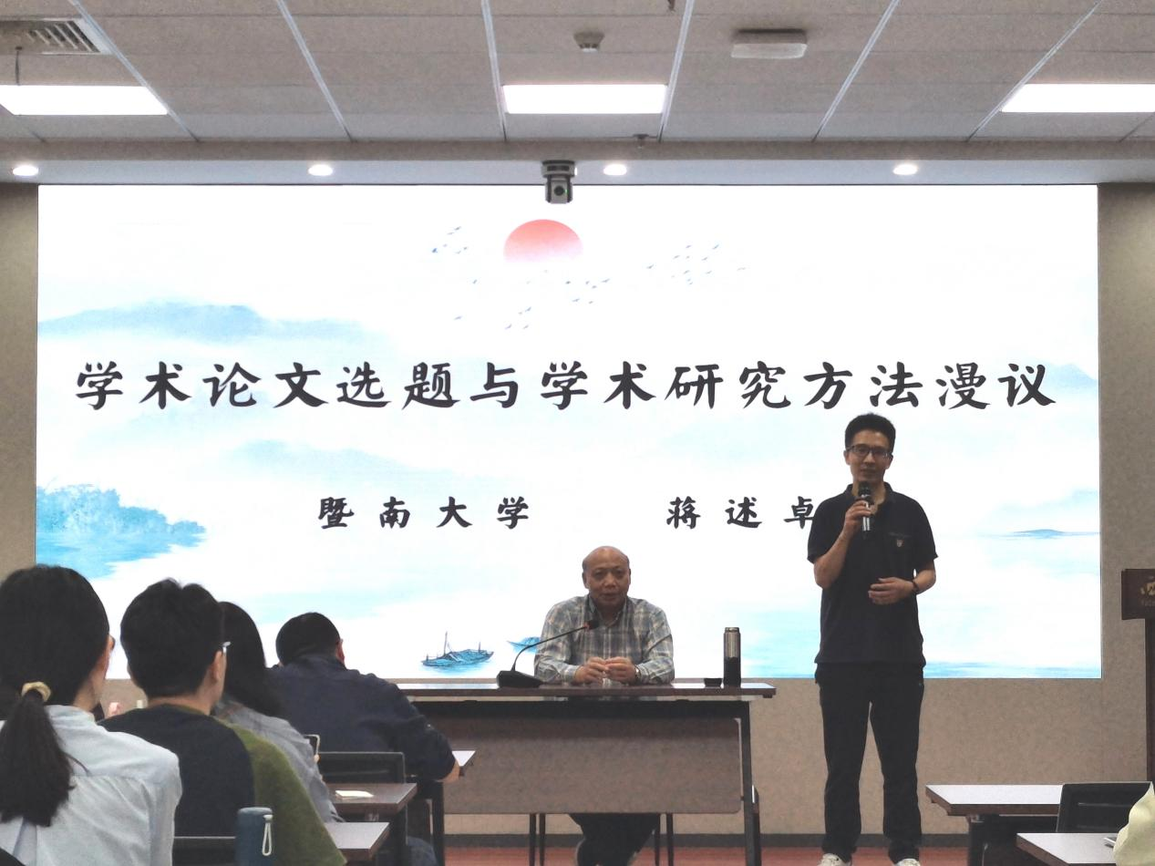 2024年10月21日晚19:30,暨南大学蒋述卓教授在我校长安校区东学楼7层701会议室作了题为《学术论文选题与学术研究方法漫议》的学术讲座。本次讲座由76net必赢官网院长谷鹏飞教授主持,我院杨新平、陈海、高翔、何明霞、陈皓钰老师和六十余名博硕士研究生参加。