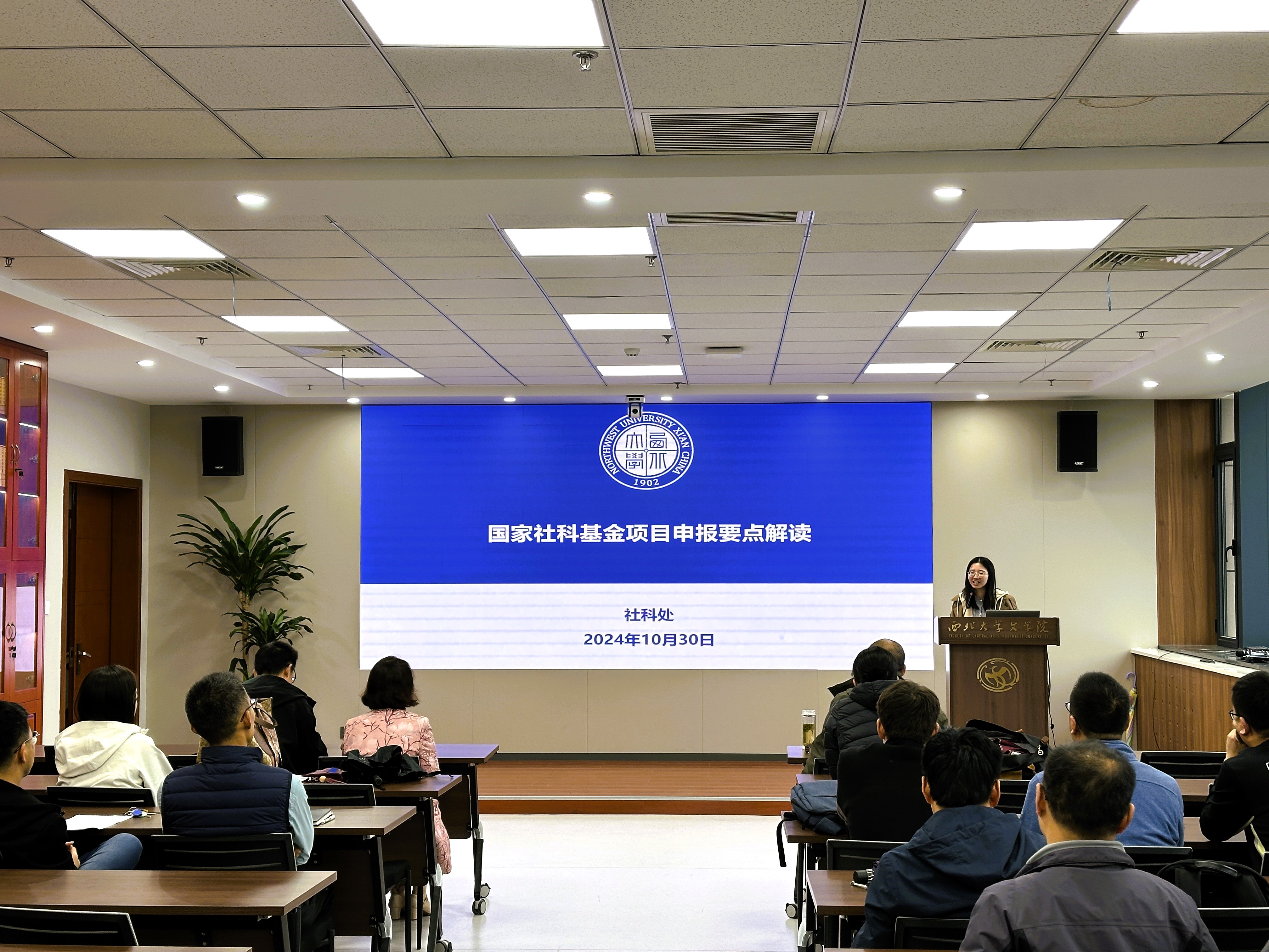 10月30日,我院在第一会议室举行了2025年度国家社科基金项目申报动员会。社科处项目管理科科长黄心一、部分学院领导和学科团队负责人、具有2025年国家社科基金申报资格的教师参加了会议。会议由副院长陈然兴主持。