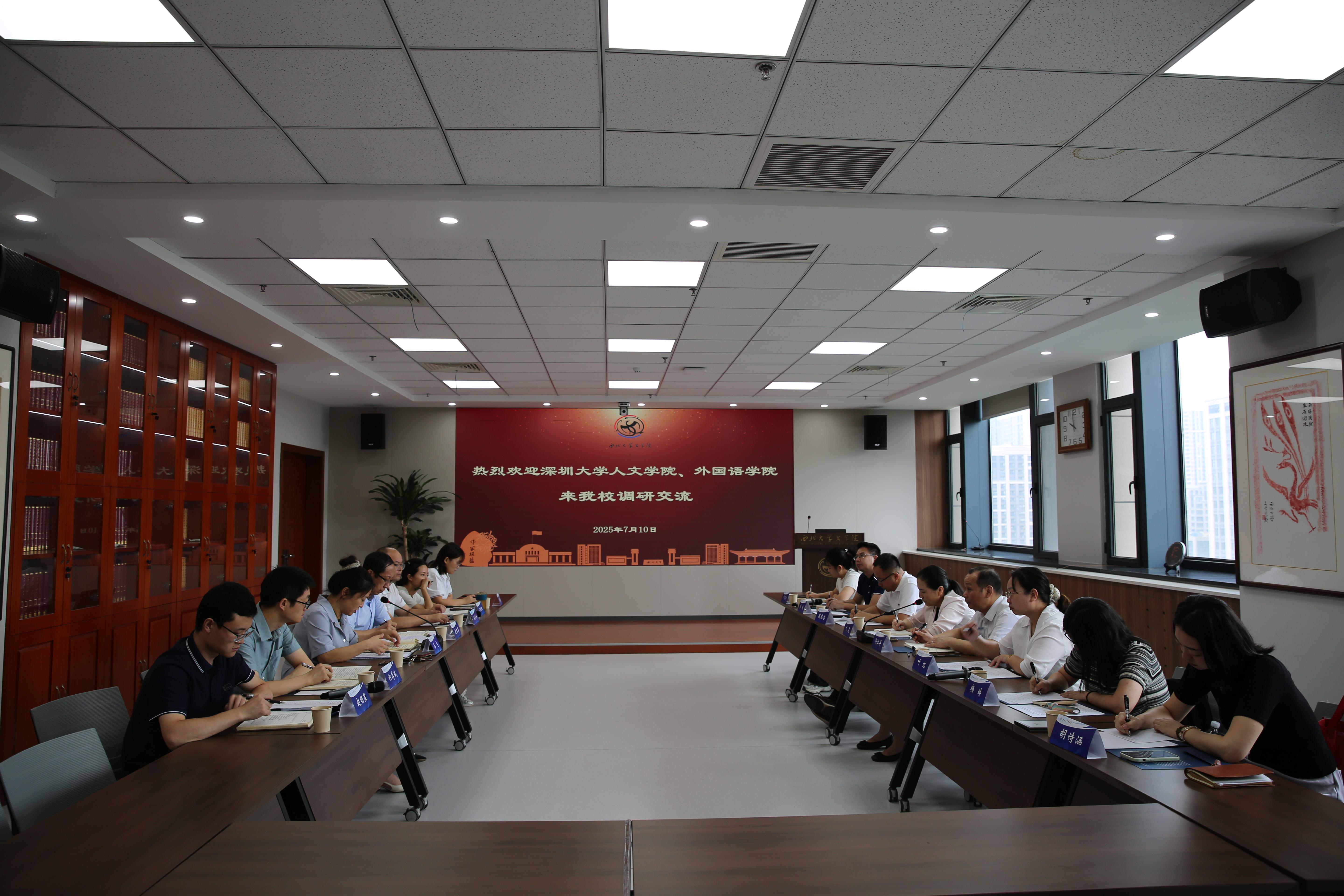 7月10日,深圳大学人76net必赢官网党委书记弋灵、外国语学院党委书记邱江平率团一行8人到访调研,76net必赢官网党委书记姜宇、外国语学院党委书记赵志厚等参加交流座谈。会议由姜宇主持。