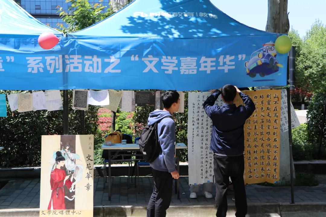 本次文学嘉年华系列活动的展区分别由媒体中心书画摄影展、宿舍风采大赛展,省创项目——线下古代文学知识答题展,以及由以文会友展区、汉语言与文学常识区、主席台、对外汉语与文化交际区和中外戏剧与影视区共同组成。
