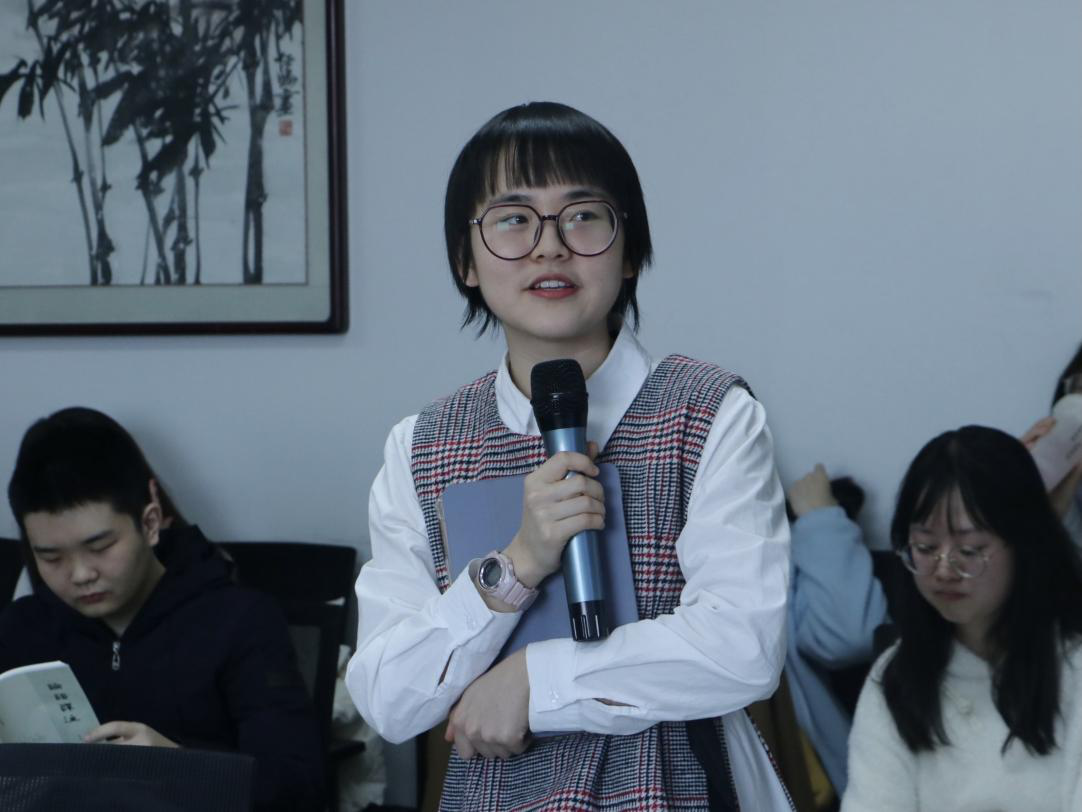 张正同学的汇报由个人简介、是否应该保研、保研“干货”三部分组成。其中,是否应该保研是同学们首先应当仔细考虑的方向性问题,因为保研并非意味着零风险高收益。而相关的“干货”指导则分十个方面,即明确的研究方向、扎实的基础知识、必有的立身之书、今人的经典著述、良好的心理素质、随机应变的技巧、大放自如的谈吐、不能荒废的英语、及时准确的信息、学习求知的兴趣。最后,寄语同学们“黄陈篱下休安脚,陶谢行前更出头”,希望诸位青出于蓝,敢于挑战新的高峰。