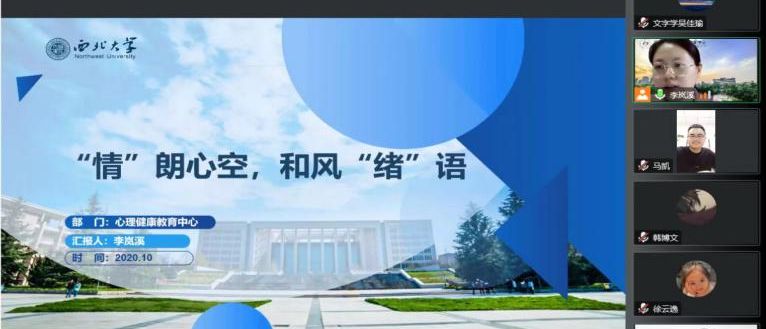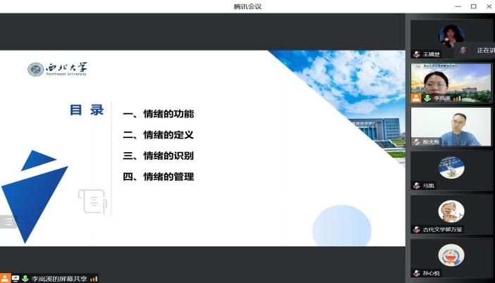 为进一步落实学生心理健康教育工作,有效缓解疫情下学生学习、生活中的心理压力,10月25日下午,76net必赢官网二级心理辅导站组织开展题为“情朗心空,和风绪语”的心理健康教育线上讲座。本次讲座由校心理健康教育中心李岚溪老师主讲,76net必赢官网辅导员殷大惟主持,心理专干马凯及2022级全体研究生参加了讲座。