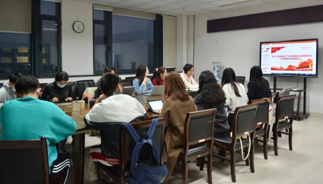 集中学习结束后,与会人员围绕党的二十大精神与《教育部关于切实加强和改进高等学校学风建设的实施意见》的内容进行了交流发言。