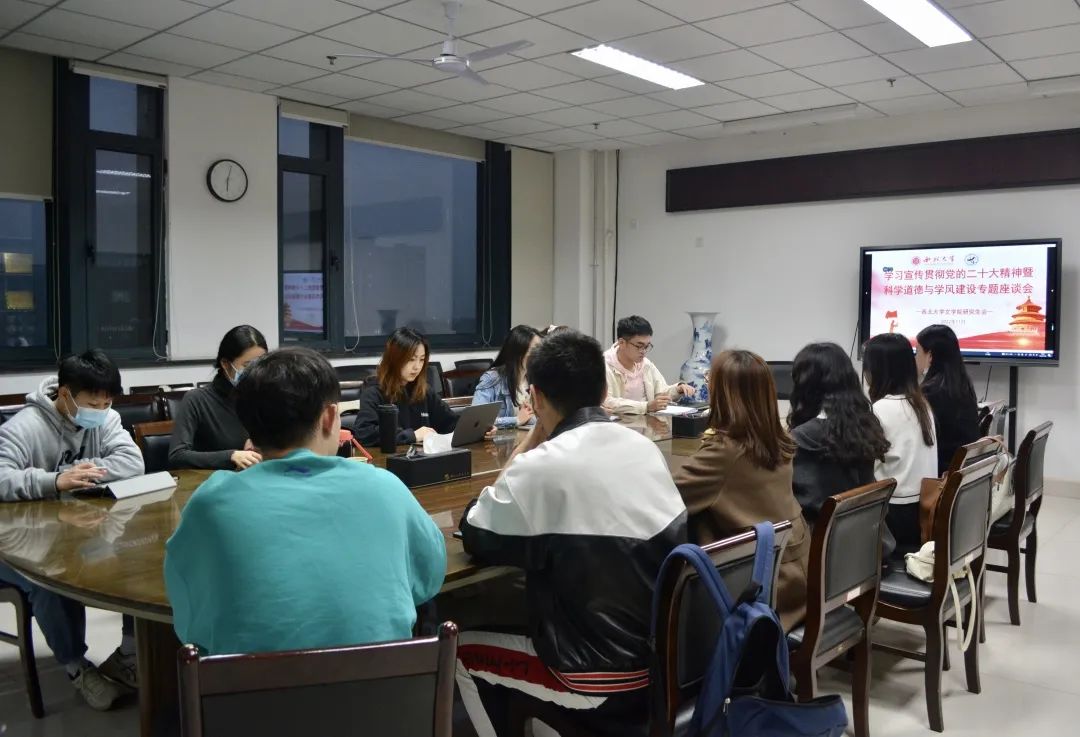为深入学习宣传贯彻党的二十大精神,进一步统一思想、提高认识,加强研究生科学道德与学风建设,11月2日下午,76net必赢官网研究生会组织了党的二十大精神专题学习会暨科学道德与学风建设专题座谈会。会议由院研究生会主席团成员南之悦主持。