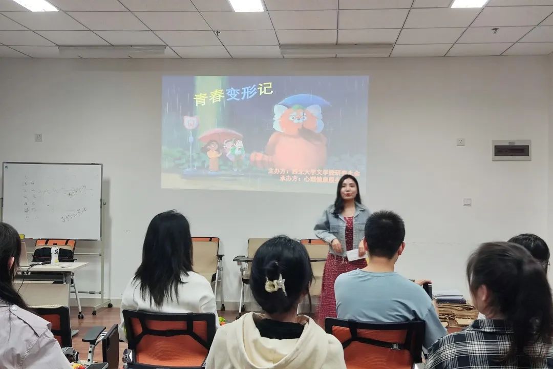 本次放映的影片是动画电影《青春变形记》。主人公李美琳是一名正值青春期的华裔女孩,继承了家族“变身”强大野兽的天赋,在其兴奋或压力过大时,会变成一只巨型红色小熊猫。小熊猫象征着青春中的个体生命变形物,揭示着成长必经的肉体与灵魂蜕化。李美琳在青春成长过程中不断剖析自我,最终获得自我认同、确认自我主体,向我们展示了个体生命经历青春的迷茫困惑后,不断找寻自我与人生意义的过程。影片构思精巧,刻画细腻,人物设定生动形象,以趣味诙谐的动画引发了同学们关于自我认同的深刻思考。