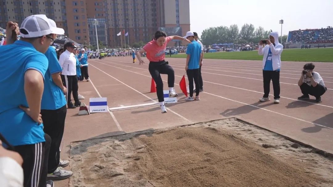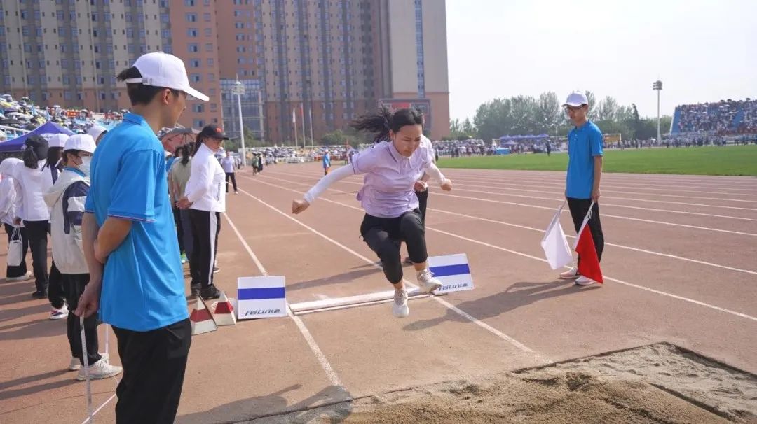 (教工 · 跳远    挥臂起跳,腾空收腿,身姿轻盈如飞燕)