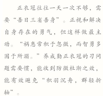 作为党员干部,特别是年轻干部,必须牢牢把握新时代党性修养新要求,以清白廉洁的政治品格捍卫党性,带头立德修身,学廉思廉践廉,自觉构筑拒腐防变的牢固堤坝,确保自身思想品德不变质、言行举止不失范。