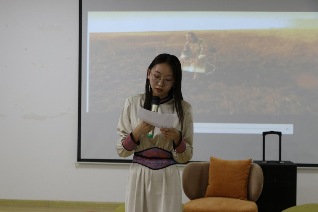 陶成涛老师和李斌老师分别就朗诵展演的作品与同学们进行了探讨,陶老师对“泥土”的这一情感意象做了阐释,鼓励同学们结合自身经历和对于家乡、民族的情感积极进行创作,同时就《嘎达梅林》背后所表现的民族精神和气节与同学们进行了交流。李斌老师专注于诗歌的背后故事,讲述了近代以来中华民族从站起来、富起来、强起来的奋斗史,鼓励各位同学们发奋图强,为中华民族的伟大复兴贡献自己的力量。