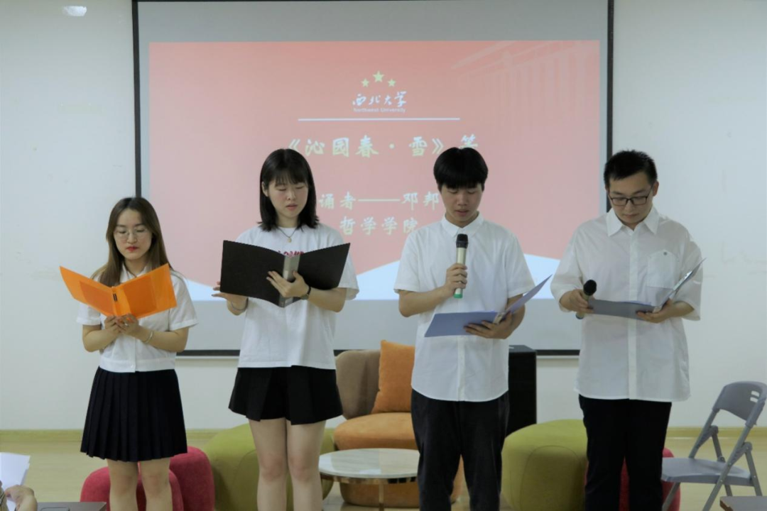 在朗诵结束后的师生分享互动中,每位同学都对朗诵的诗歌的背景和自身心路历程进行了说明,或基于过往经历,或摄于诗中情怀,或寄托拳拳赤心,诉说着自己对爱国主题、红色精神的新体悟。