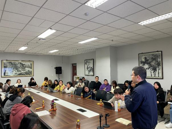 随后,特邀嘉宾黄翌以《独领风骚——毛泽东心路历程解读》为主题分享了关于毛泽东心路历程、诗词创作和中国革命关系的看法。他从马克思主义在中国的传播入手,认为马克思主义一开始进入中国就是带有救亡图存的目的性和实用性的,并不是单纯的学术思想。中国文学是服务于社会的,而中国文学毋庸置疑是以马克思主义思想为指导的,左翼作家联盟就是一个例证。同时他认为毛主席的心路历程,不仅是个人感情的变化历程,更是中国革命发展历程,毛主席个人的感情起伏和中国革命的发展历程息息相关。因此他提出四点倡议:第一,我们要去努力认识作为领袖的毛泽东;第二,要认识一个作为哲学家的毛泽东;第三,要认识一个作为诗人的毛泽东;第四,要认识一个作为长辈的毛泽东。最后他号召同学们,通过阅读和研究,让研究对象的光辉照耀自己,进行自我革命,实现人格升华。在提问环节,他重点回答了“人们对于红色经典评价的争议产生的主要原因在于艺术性和政治性的关系问题,马克思主义作为指导思想,对于文学有多大的影响?”的问题。根据习近平总书记提出的“党史姓党”这一根本原则,他认为红色经典作品中政治性是第一位的,并且政治性和艺术性可以自洽,关键是看创作者有没有实现自洽的能力。