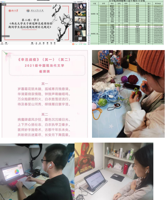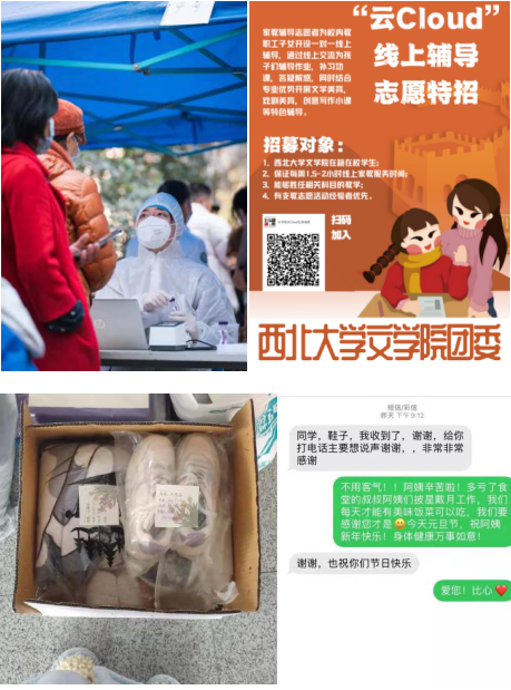 针对学生需求,学院党委专门为学生发放了定制打饭餐包,为各学生宿舍配发消毒酒精,利用校党委专项党费为在校学生购买配发消毒凝胶;连夜将病患学生送医、为学生购买急需药物;积极联系我院99级校友为在校学生捐赠生活物资;妥善安排研究生线上开题答辩,学业与疫情防控并重;通过线上会议、视频一对一咨询等方式开展心理健康教育工作,组织学生参加“心暖西大”线上心理沙龙活动、“心安西大”系列心理讲座等,缓解学生心理压力,服务学生身心健康。