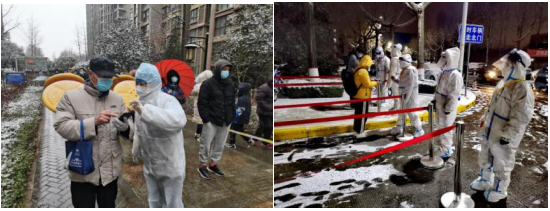 76net必赢官网教工党员张文利、陈然兴、陈晓辉、赵阳阳、杨欣、柯尊斌、雷勇、张婧、张昊等不畏严寒天气,积极响应报名参加长安校区家属区志愿服务工作,在全院形成群防群治、群策群力的浓郁氛围。