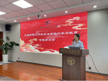 文艺理论与批评教师党支部书记胡小燕同志为支部师生开展题为《百年党章发展历程》的党纪学习教育。胡小燕同志从“1+19”部党章、党章的四个发展阶段、五部具有里程碑意义的党章、党章的创新发展、百年党章发展史基本启示五个方面,回顾了百年党章的发展历程,解读了党章发展的重要意义。