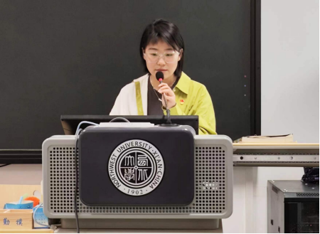 古典文学与文献学学生党支部书记常宁同志领学了《“典”亮古诗文里的廉政——苏轼篇》。她结合专业特长,详细讲解了习近平总书记曾多次引用的苏轼所写诗句,深入解读了这些诗句背后的廉政思想,进一步激发了党员们的纪律意识和廉洁意识。