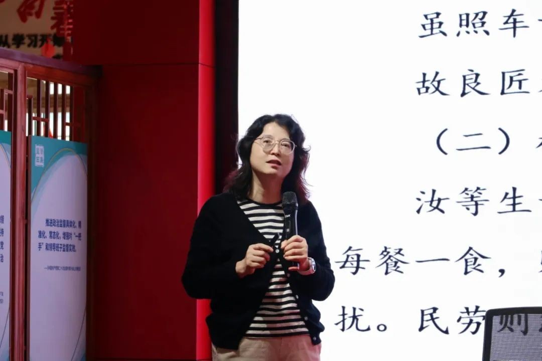 参观学习结束后,古典文学与文献教师党支部张文利教授以“陕西优秀传统家风文化及其当代价值”为主题,为所有党员上了一节融合党性教育与学科特色的党课。张老师以习近平总书记关于注重家庭家教家风建设的重要论述为切入点,通过分析唐代苏瑰《中枢龟镜》、宋代《吕氏乡约》以及汉阴沈氏、安康谢氏等陕西先贤家风家训的具体案例,强调了赓续弘扬中华优秀家教家风文化的重要意义。张老师指出,加强廉政家风建设,有利于促使家庭成员之间形成崇廉尚洁、诚信守法的良好风尚,对净化党内政治生活,提高党的凝聚力和公信力大有裨益。最后,张老师强调家风家教既要传承美德,也要与时俱进。
