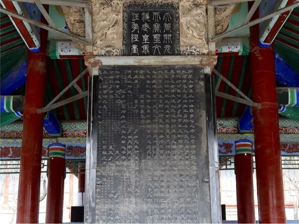 师生党员驻足碑林广场的《石台孝经》。此碑由唐玄宗李隆基亲自书写,以“孝”为核心要义,而“孝”作为儒家伦理的基石,延伸至为官理政层面便是“忠”与“仁”,即对国家忠诚、对百姓仁爱,这正是治国理政的根本前提,也为党员干部树立了“修身齐家治国平天下”的思想标杆。