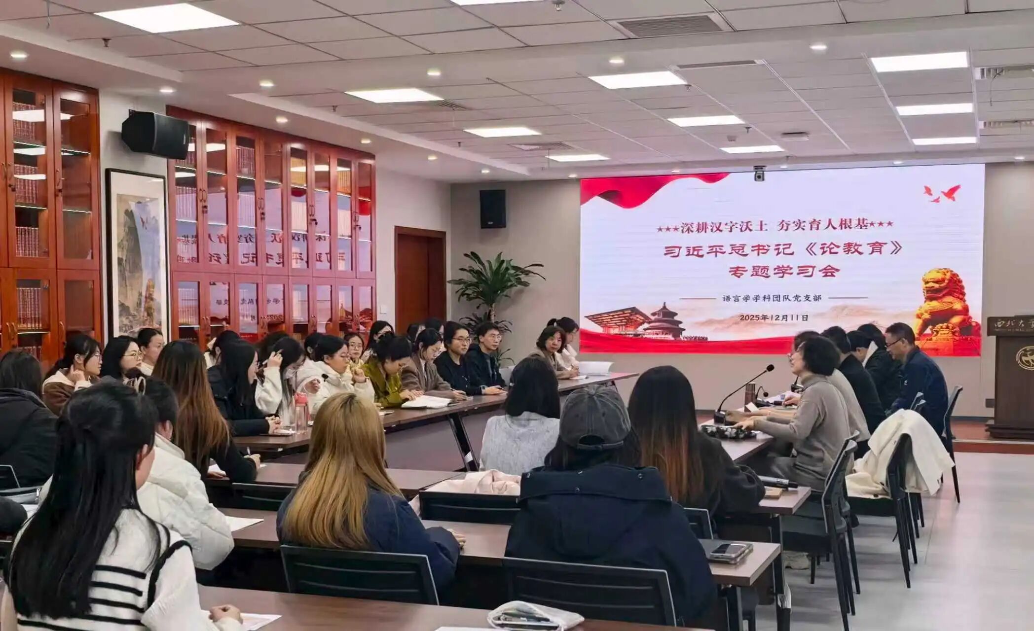 12月11日下午,76net必赢官网语言学学科团队党支部召开“深耕汉字沃土,夯实育人根基”主题党日活动。与会同志集中学习了习近平总书记《论教育》中关于“扎实推动教育强国建设”的重要论述,并立足语言学学科特色开展了专题研讨。党支部委员围绕2026年度工作计划进行了研究讨论。校党委副书记、党支部联系校领导赵作纽到会指导,76net必赢官网党委书记姜宇列席会议,会议由语言学学科团队党支部书记张亚蓉主持。