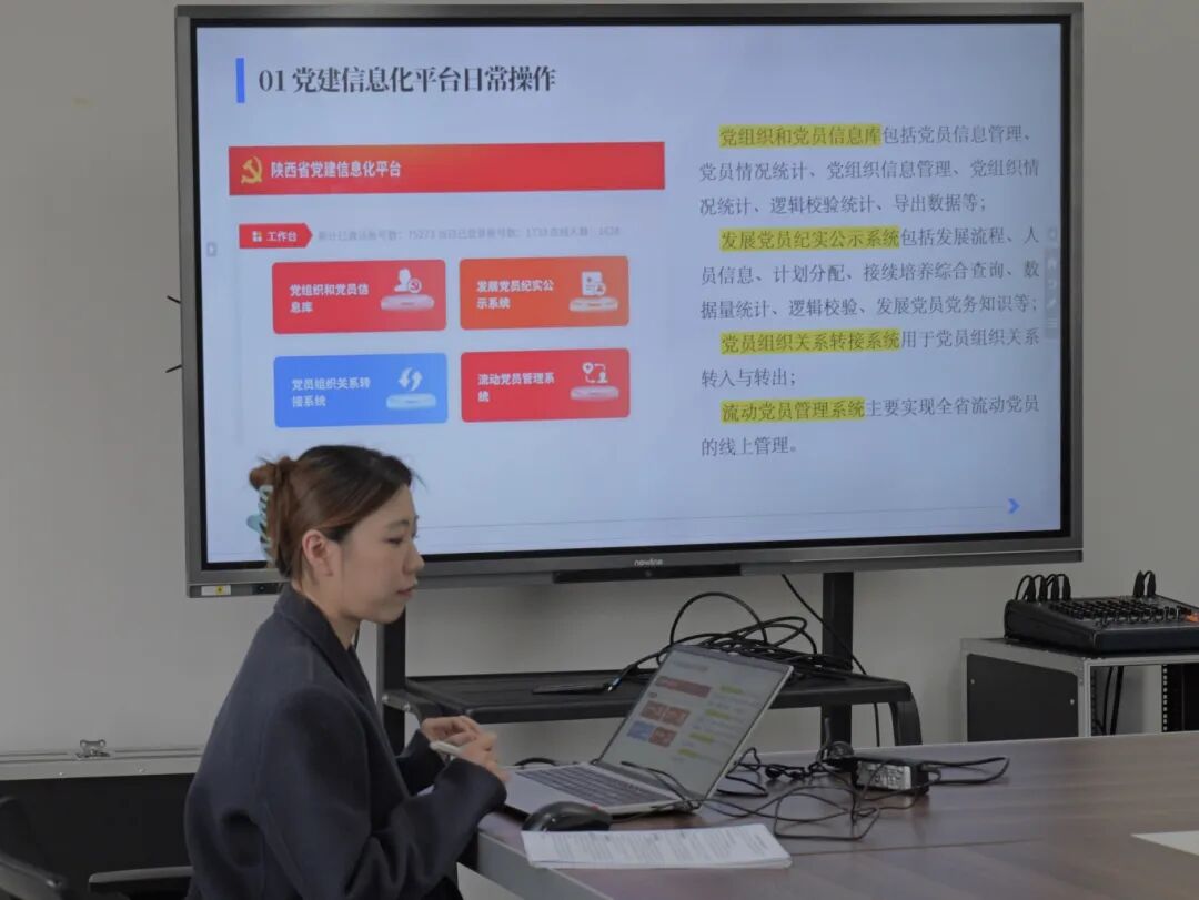 实务培训环节,公共管理学院分党校负责人李文就党务系统操作、党统年报填报、日常数据维护等内容进行细致讲解与现场答疑。她紧扣基层党建工作重点难点,通过现场演示、步骤讲解、案例分析等方式,让学员们对各项操作流程有了清晰认识。