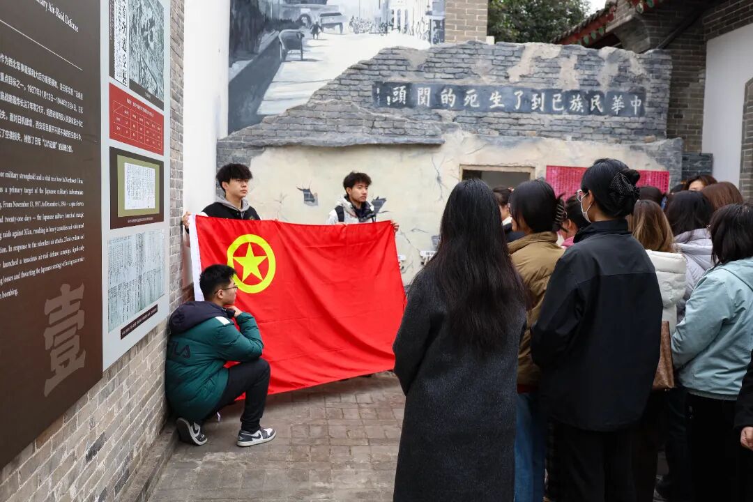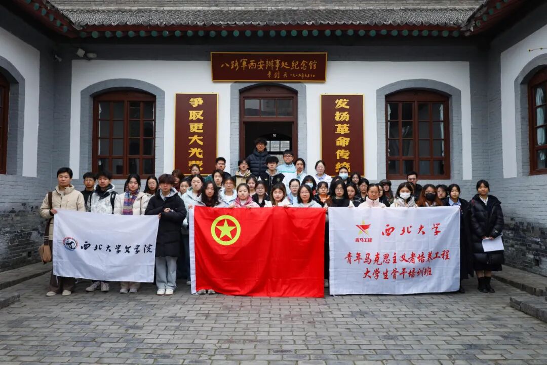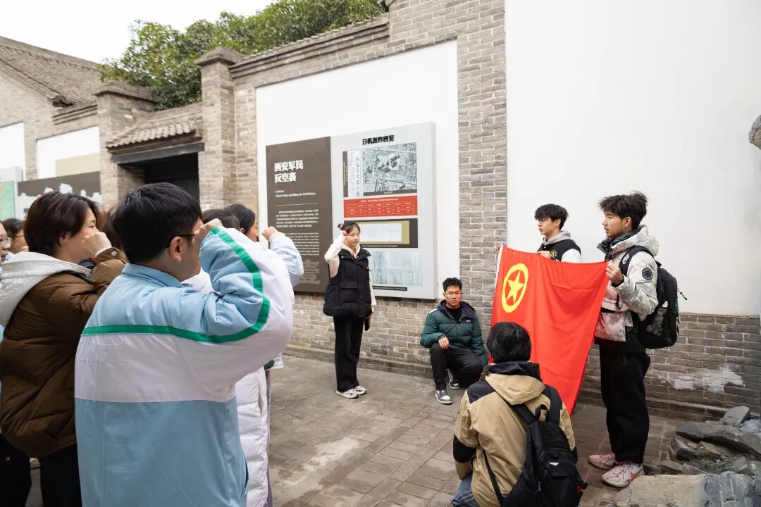 为深入学习党的二十届四中全会精神,贯彻落实习近平总书记关于青年工作的重要思想,引导青年学子坚定理想信念、传承红色基因、勇担时代使命,在纪念中国人民抗日战争暨世界反法西斯战争胜利80周年之际,12月20日,76net必赢官网2025级本科各班级团支部联合校“青马工程”知行一班团支部赴八路军西安办事处纪念馆,开展“传承红色血脉,厚植爱国情怀”主题团日活动。76net必赢官网专职团干部、校“青马工程”知行一班班主任杨崧维,76net必赢官网2025级本科各班级团支部团员代表,校“青马工程”知行一班全体学员50余人参加活动。活动由胡冠琼同学主持。