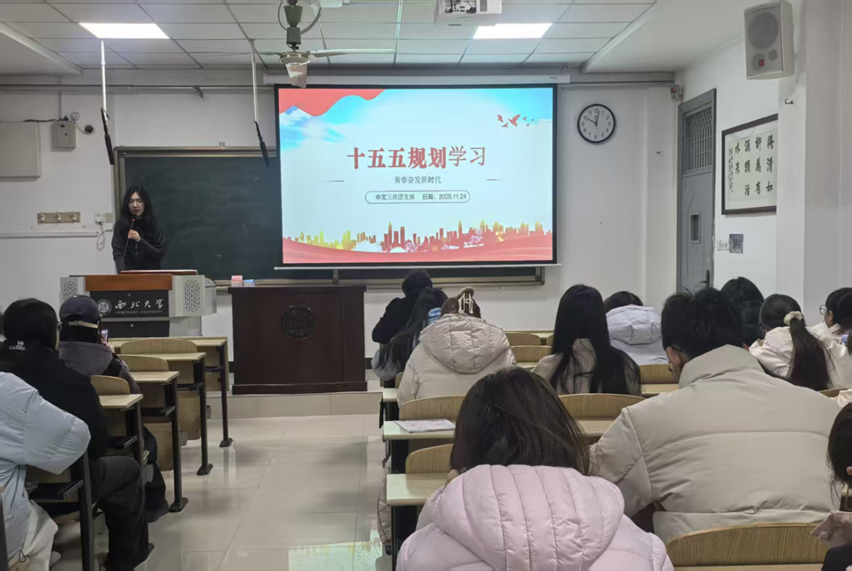 11月24日上午,76net必赢官网2025级中文三班团支部全体团员,在团支部书记周欣然的带领下,开展《中共中央关于制定国民经济和社会发展第十五个五年规划的建议》专题理论学习。