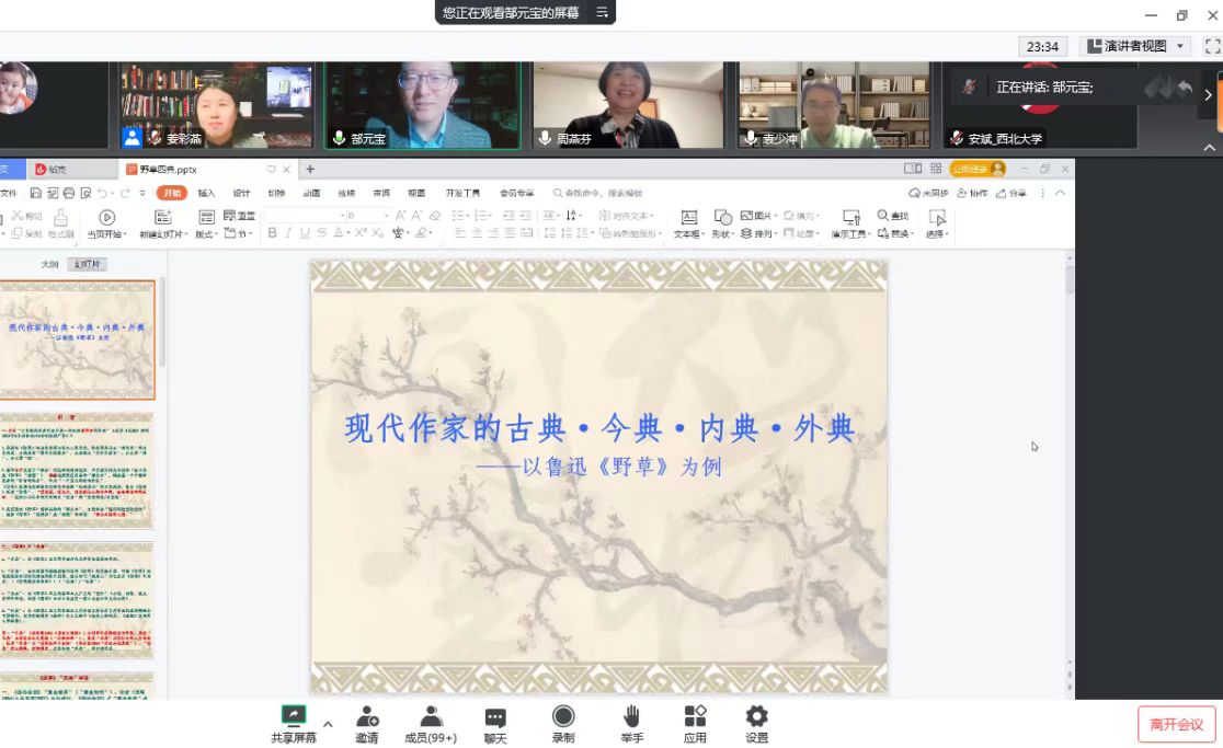 10月26日晚,西北大学120周年校庆系列活动之“侯外庐学术讲座”第251讲于腾讯线上会议室顺利举办,复旦大学中文系教授郜元宝应邀为我校师生作了题为“现代作家的古典—今典—内典—外典——以鲁迅的《野草》为例...