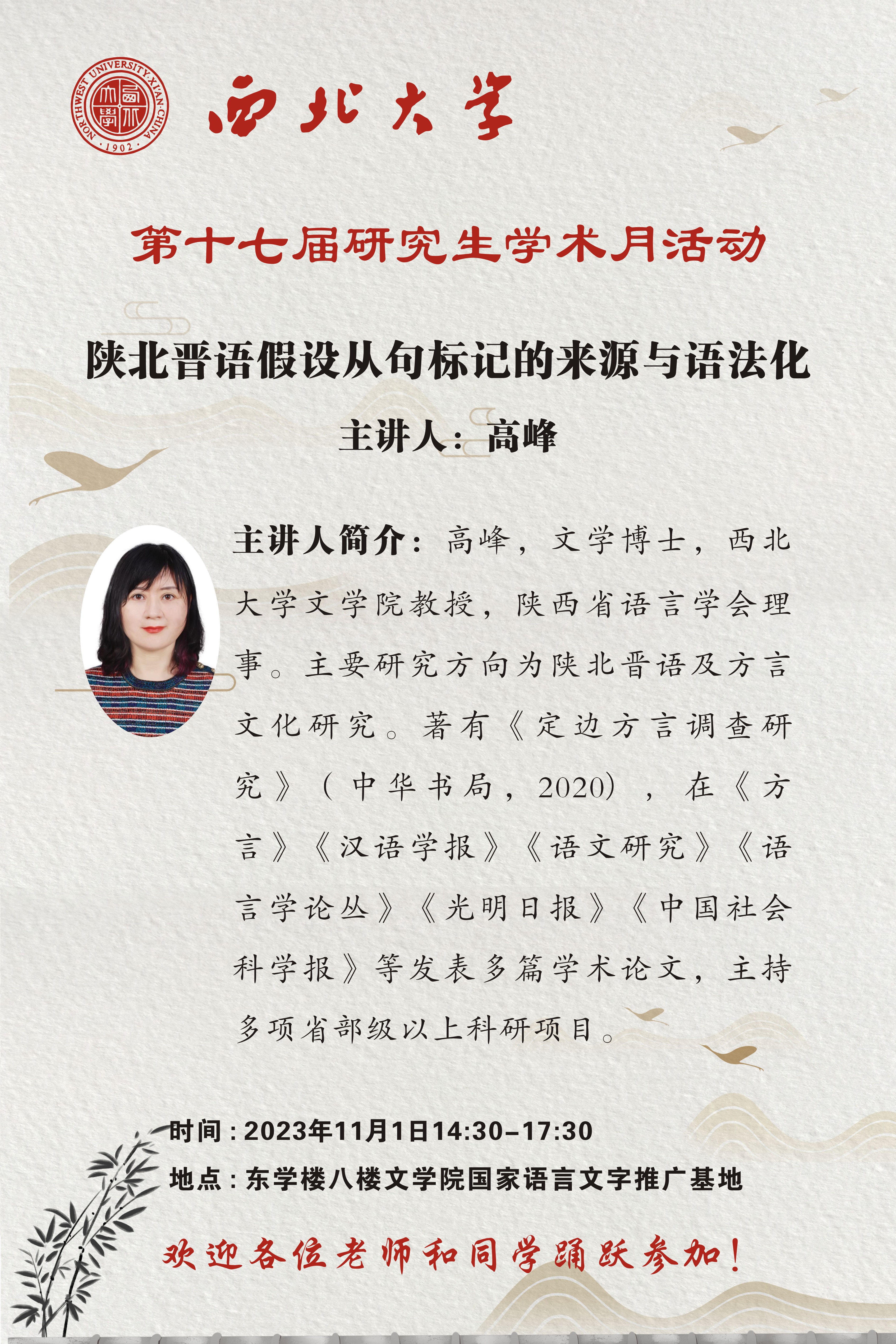 【学术月讲座预告】高峰:陕北晋语假设从句标记的来源与语法化