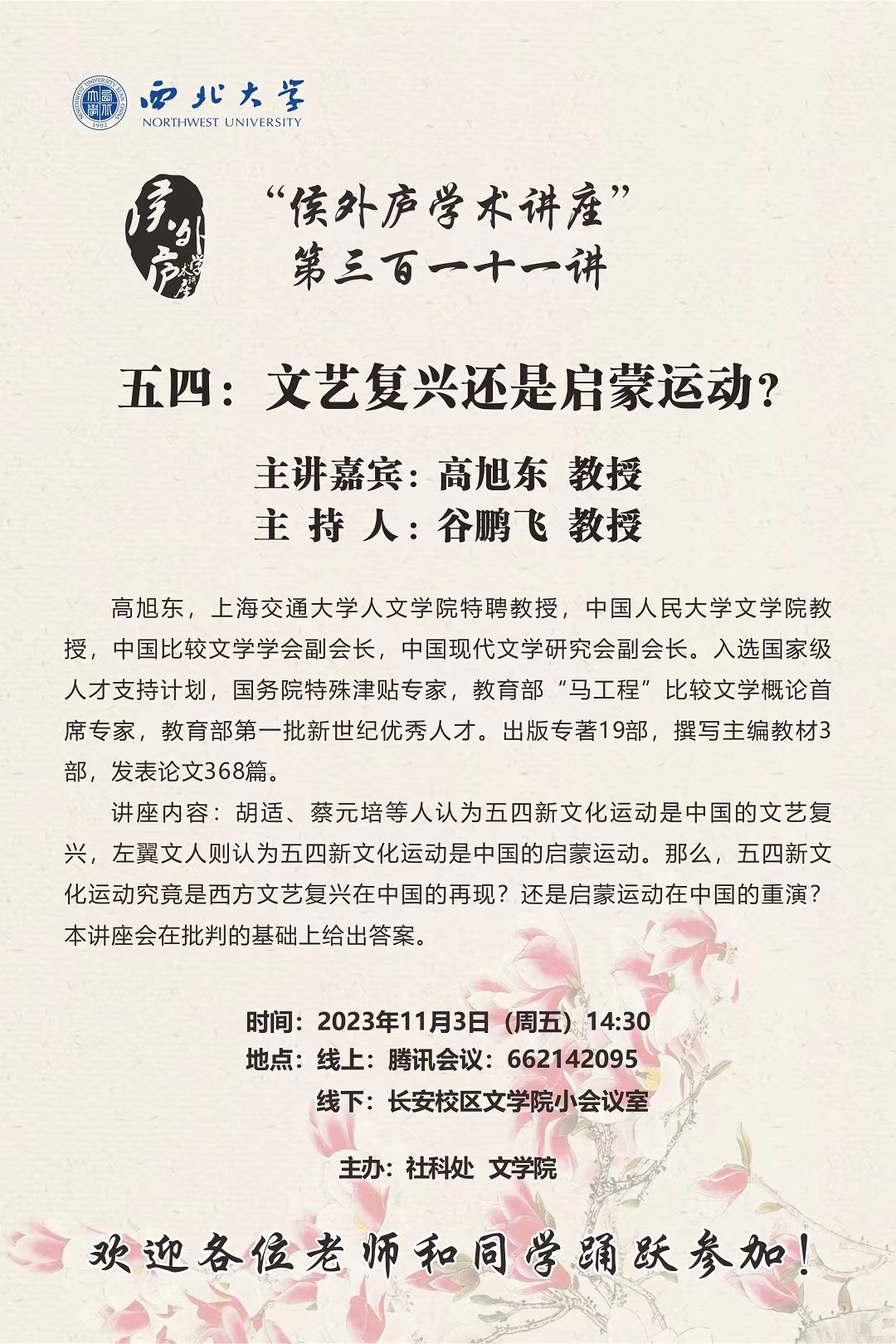 【侯外庐学术讲座】高旭东:五四 文艺复兴还是启蒙运动?