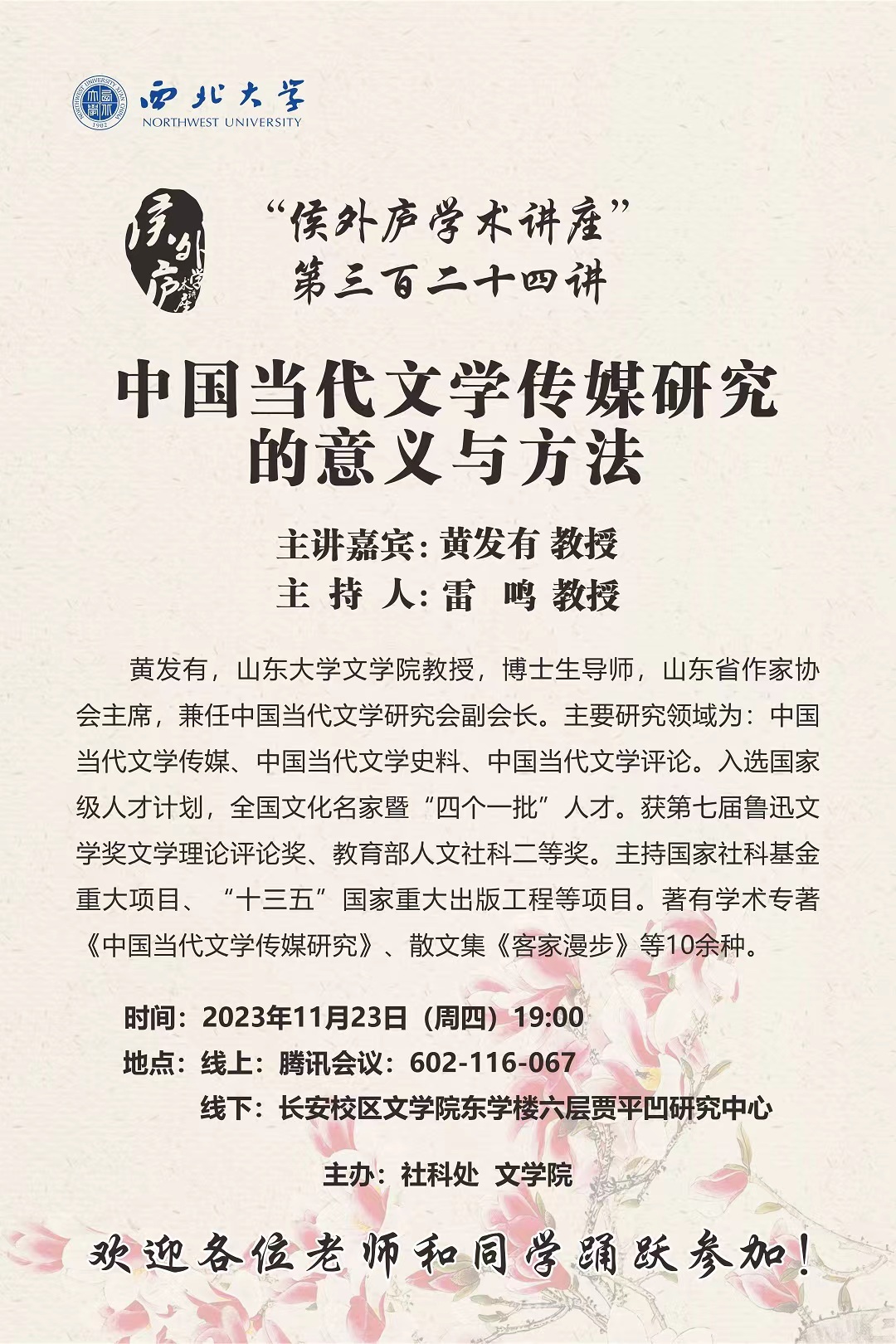 【侯外庐讲座】黄发有教授:中国当代文学传媒研究的意义与方法
