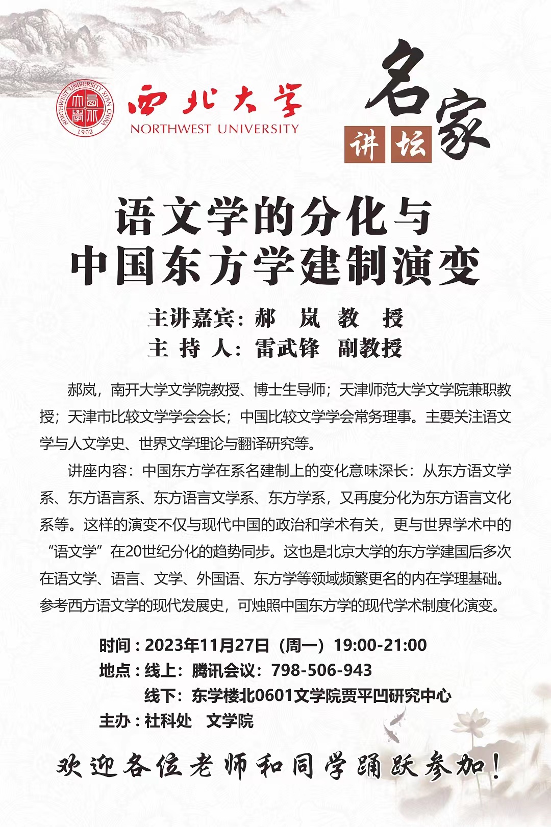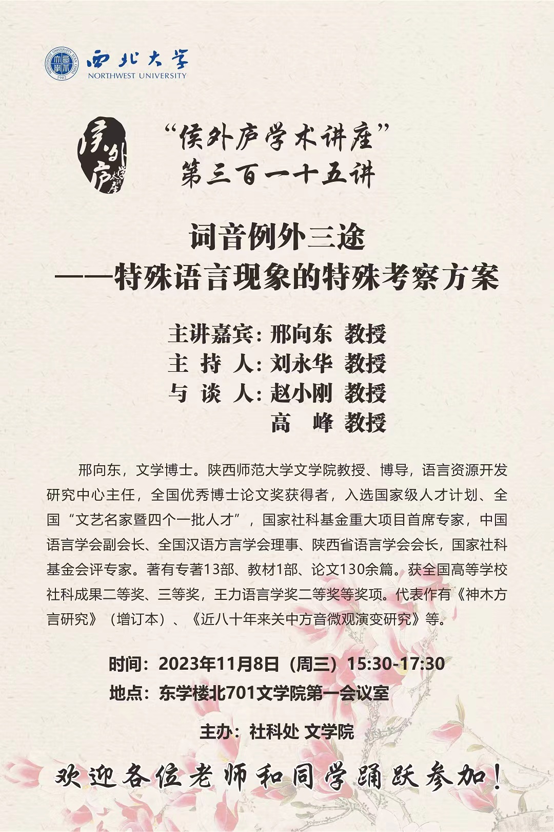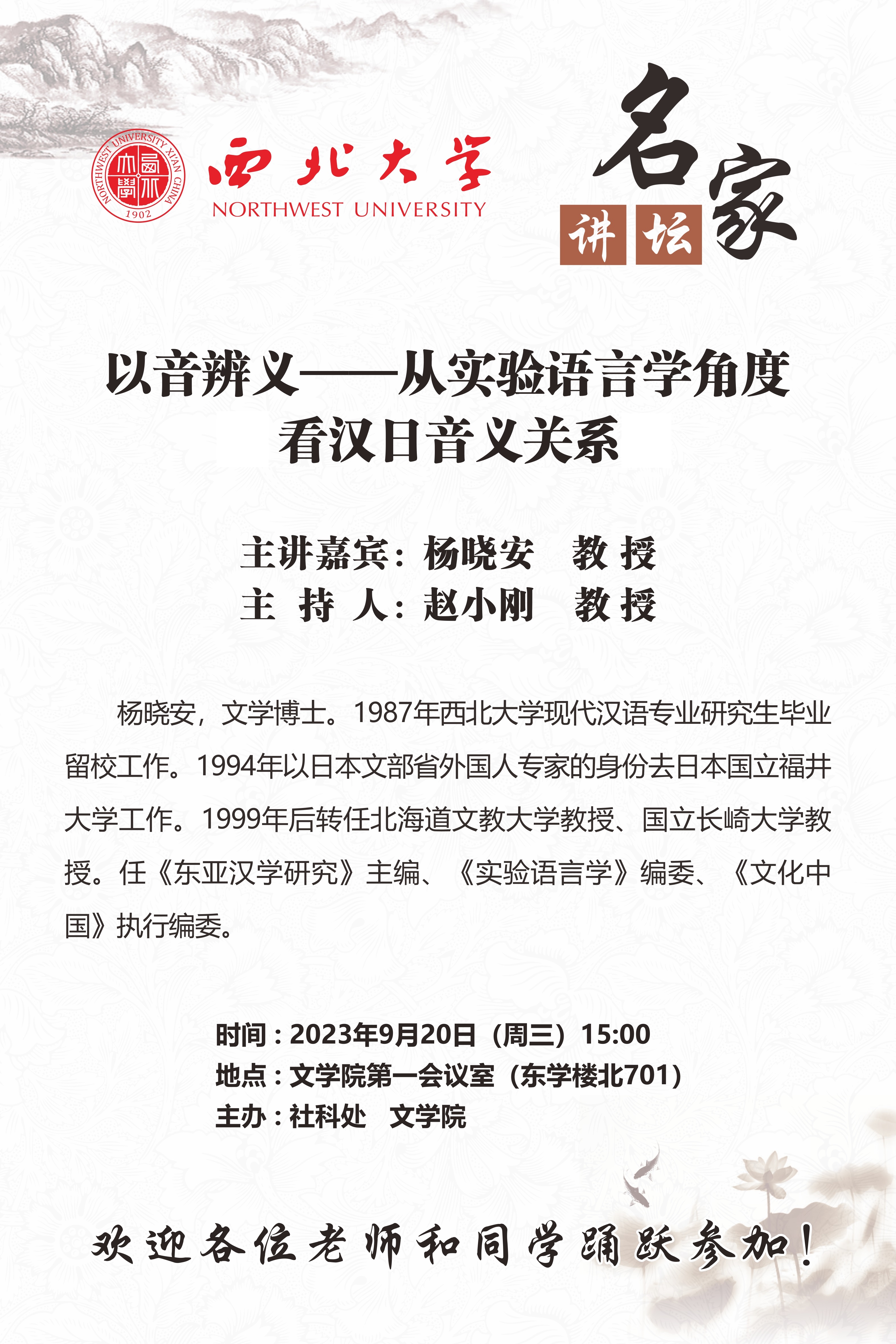 【讲座预告】名家讲坛:以音辩义——从实验语言学角度看汉日音义...