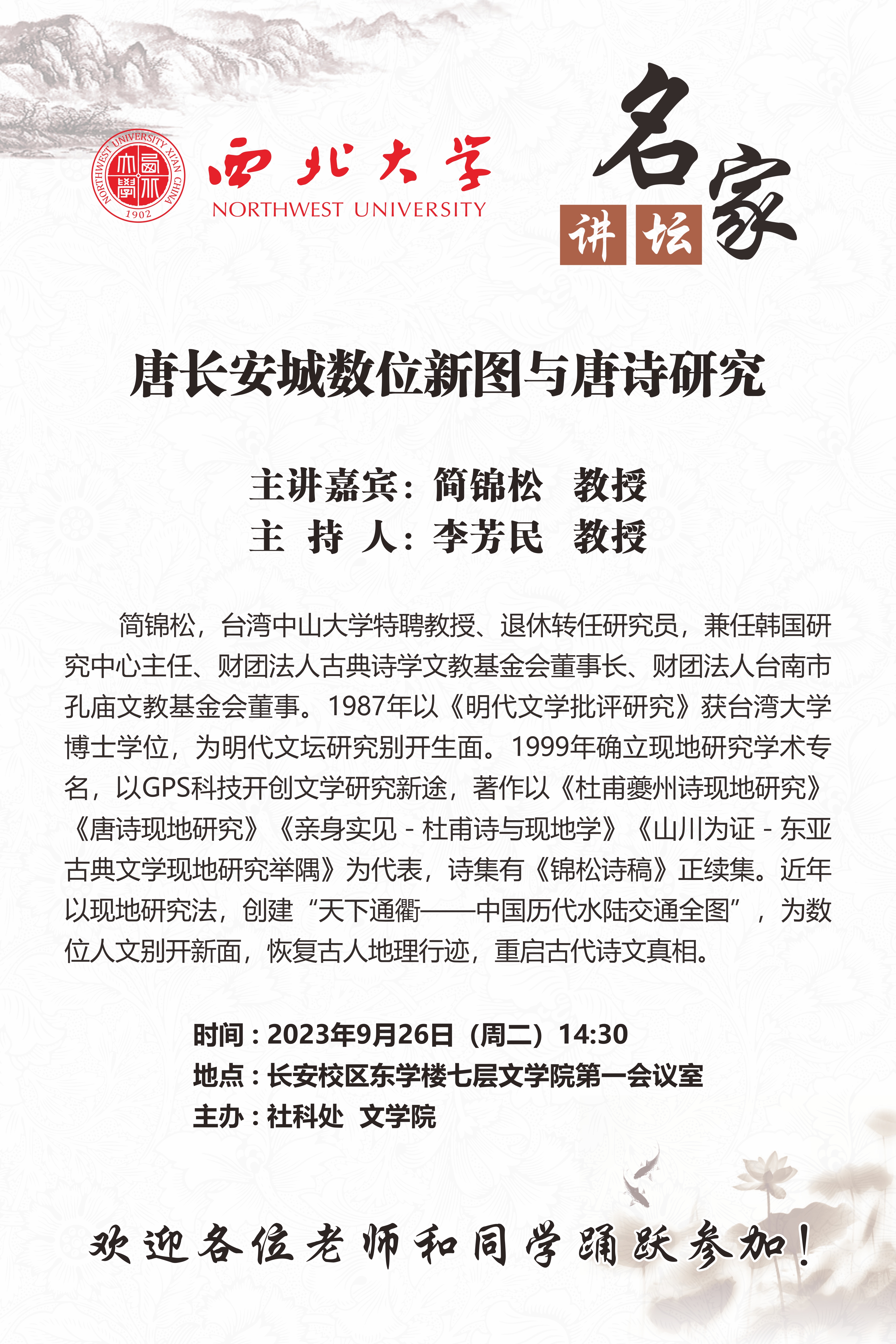 【名家讲坛】简锦松:唐长安城数位新图与唐诗研究
