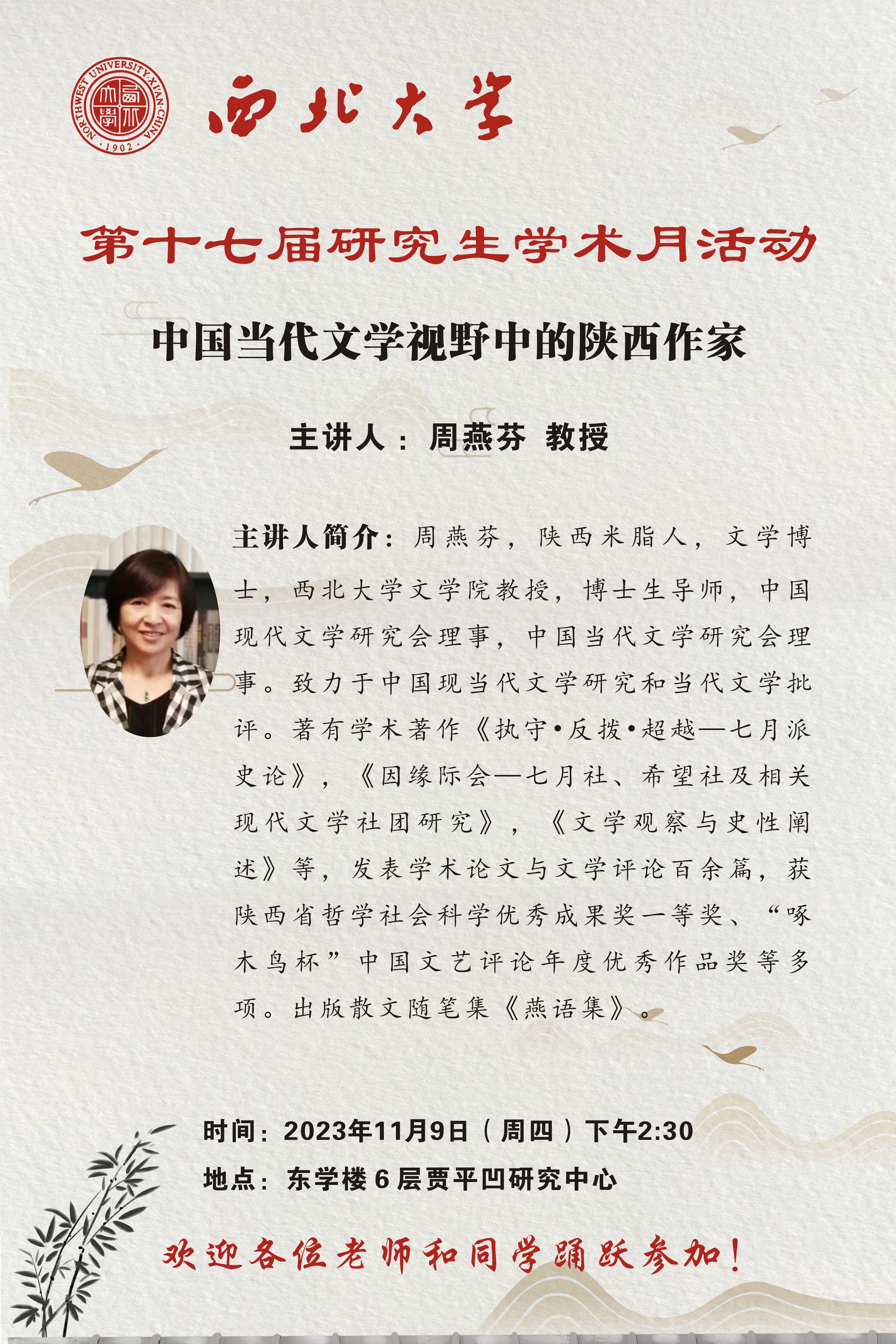 【学术月讲座预告】周燕芬:中国当代文学视野中的陕西作家