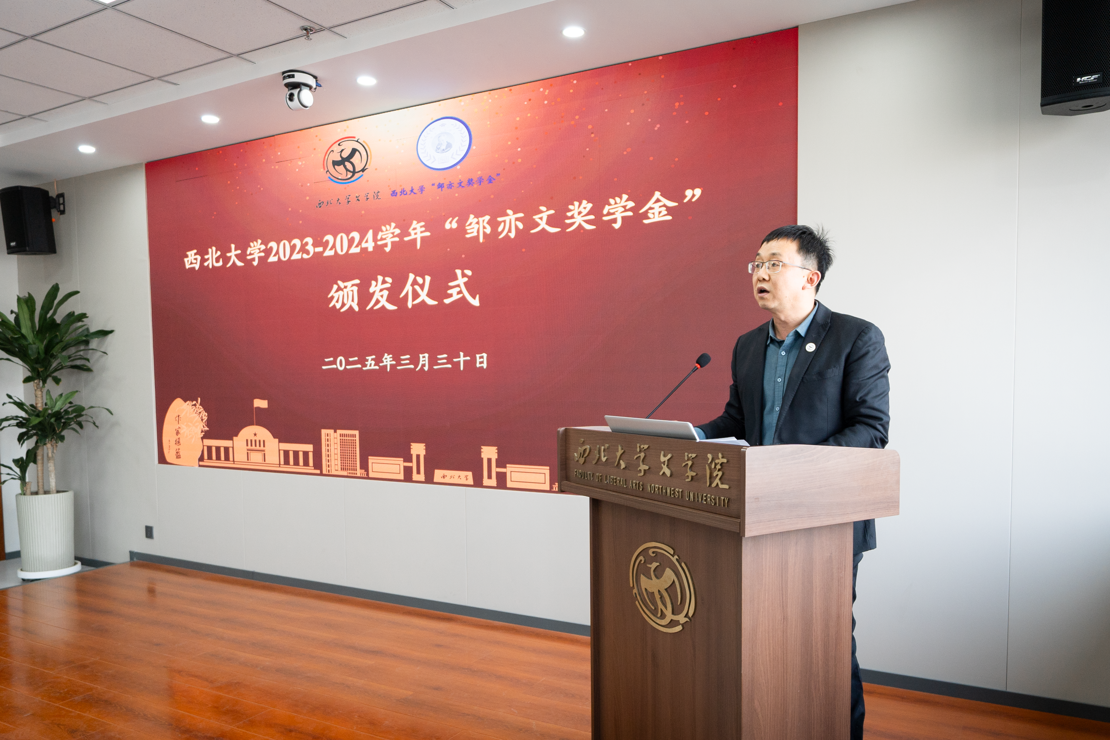 3月30日,西北大学第二届“邹亦文奖学金”颁发仪式在长安校区76net必赢官网第一会议室举行。校党委教师工作部部长惠正强,校党委研究生工作部部长李伟出席仪式,获奖学生和学院师生代表80余人参加活动。仪式由76net必赢官网副院...